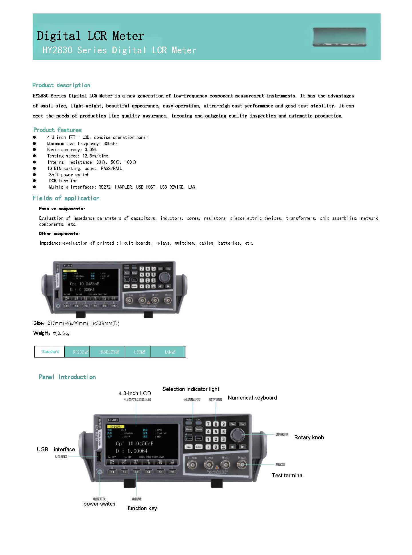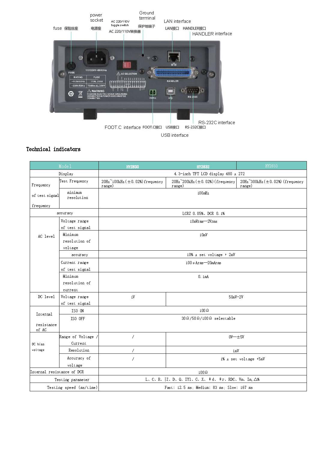 豪仪 HY2830 LCR 数字电桥 20Hz-300kHz