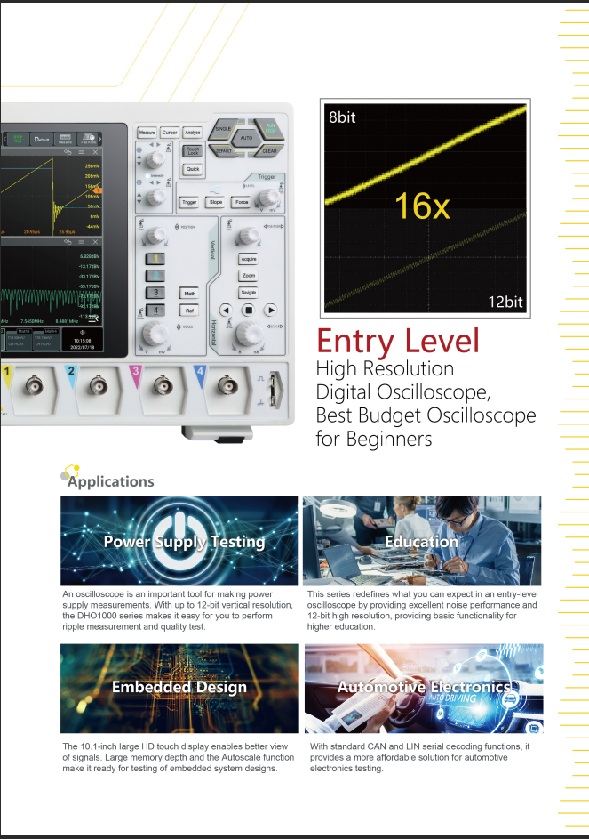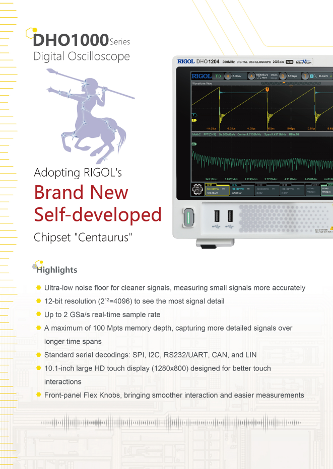 RIGOL DHO1072/DHO1074/DHO1102/DHO1104/DHO1202/DHO1204 - 2/4通道 70/100/200 MHz 数字示波器 12位 1GSa/sec 50MPts