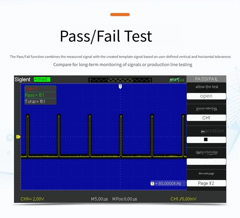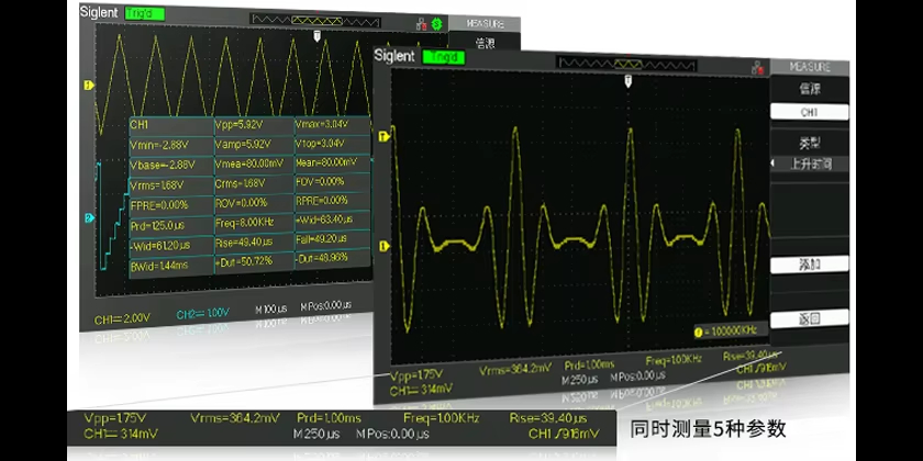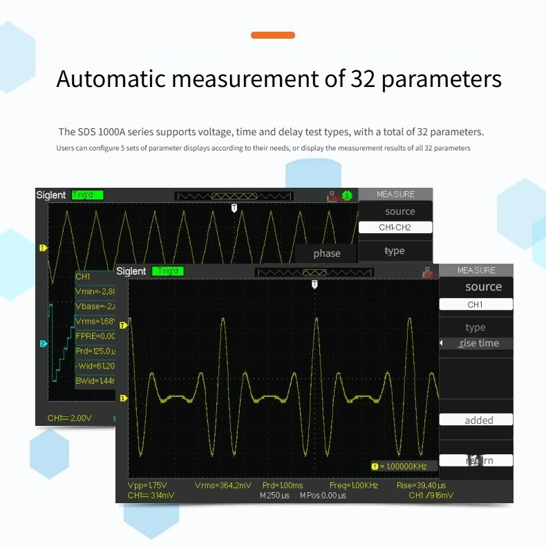 SDS1000A Series products support voltage, time and delay3Large variety of tests, total32Kind of parameters Users can configure