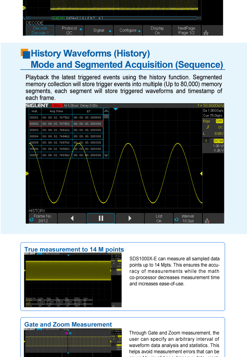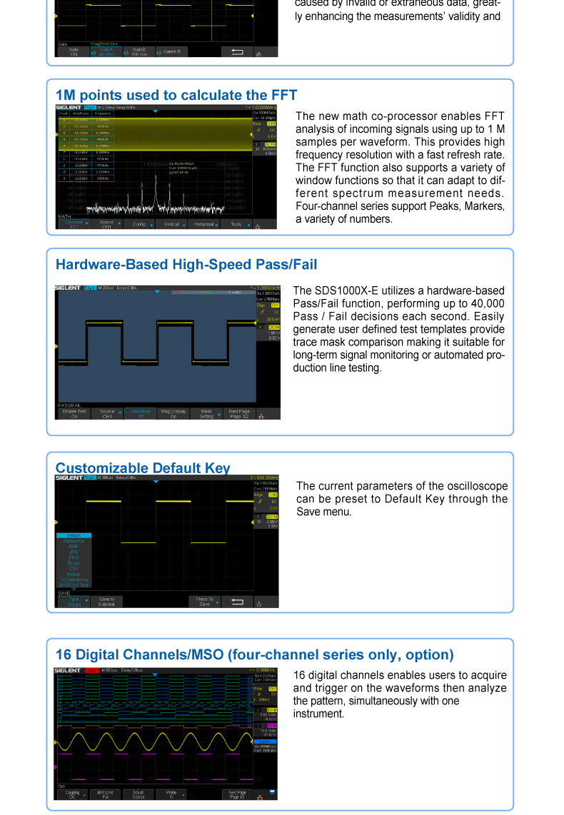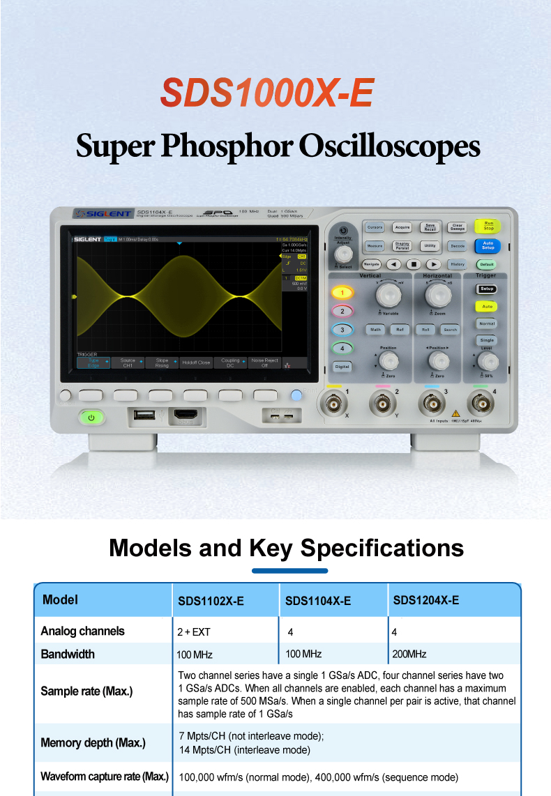 Siglent SDS1072/1074/1102/1104/1202/1204X-E 数字存储示波器 8位/1Gsa/s 100MHz 2-4通道 14Mpts存储