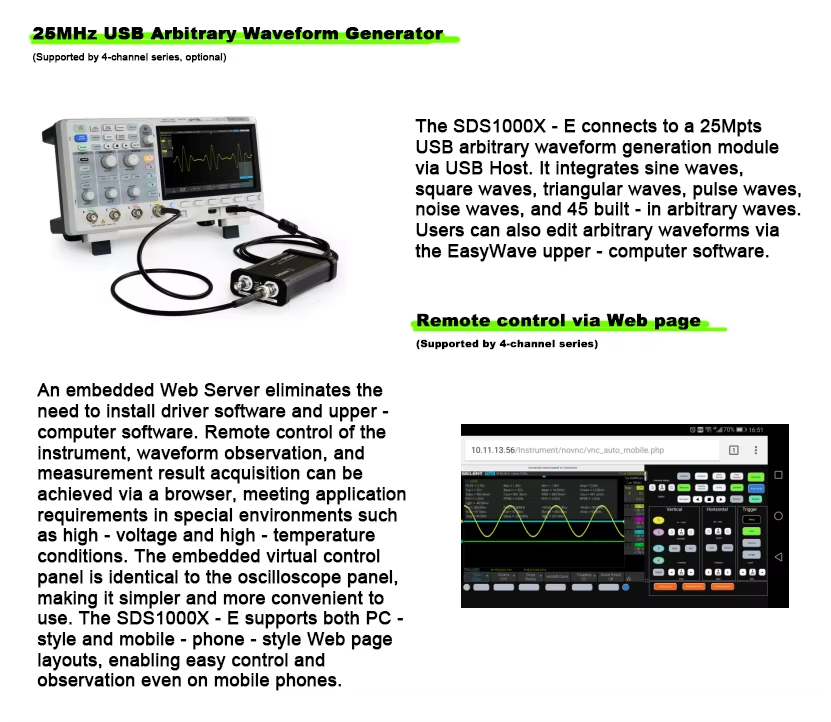 Siglent SDS1104X-E 1204X-E 数字示波器 双/四通道 200M 带宽 4 通道 100MHz 示波器