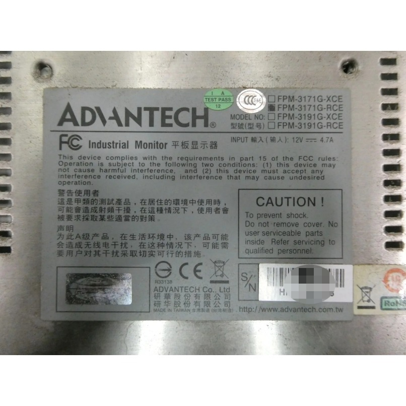 研华 FPM-3171G-RCE 操作界面面板 12v-dc