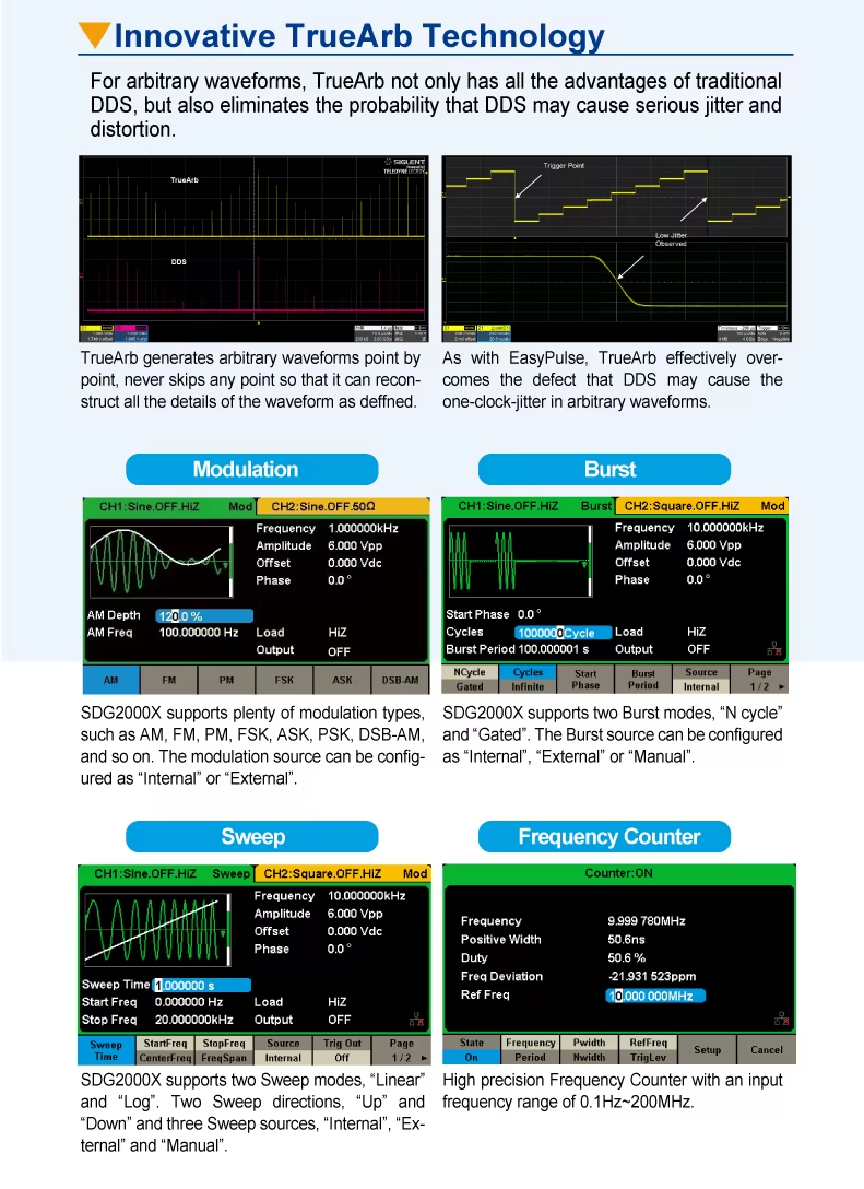 Siglent Siglent SDG2122X 120MHz 2通道 1.2GSa/s 16位 10V 任意波形发生器,具有正弦波/脉冲波/锯齿波功能