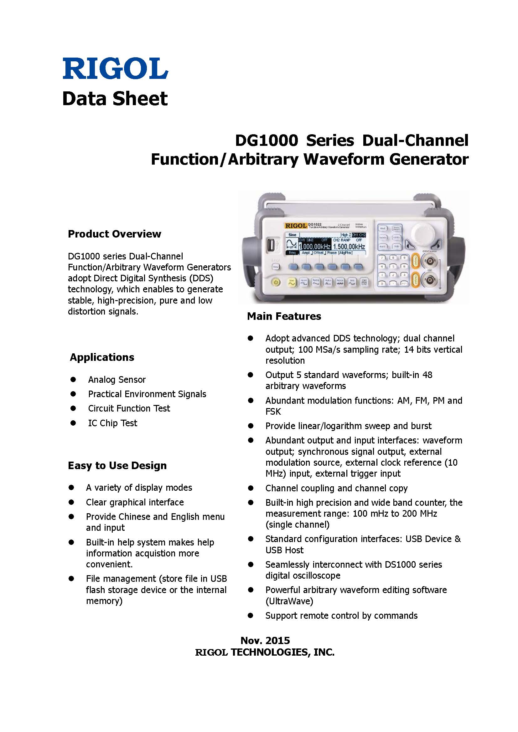 RIGOL DG1022U 信号发生器 2 通道 25 MHz 通用信号源/任意波形信号发生器分析仪