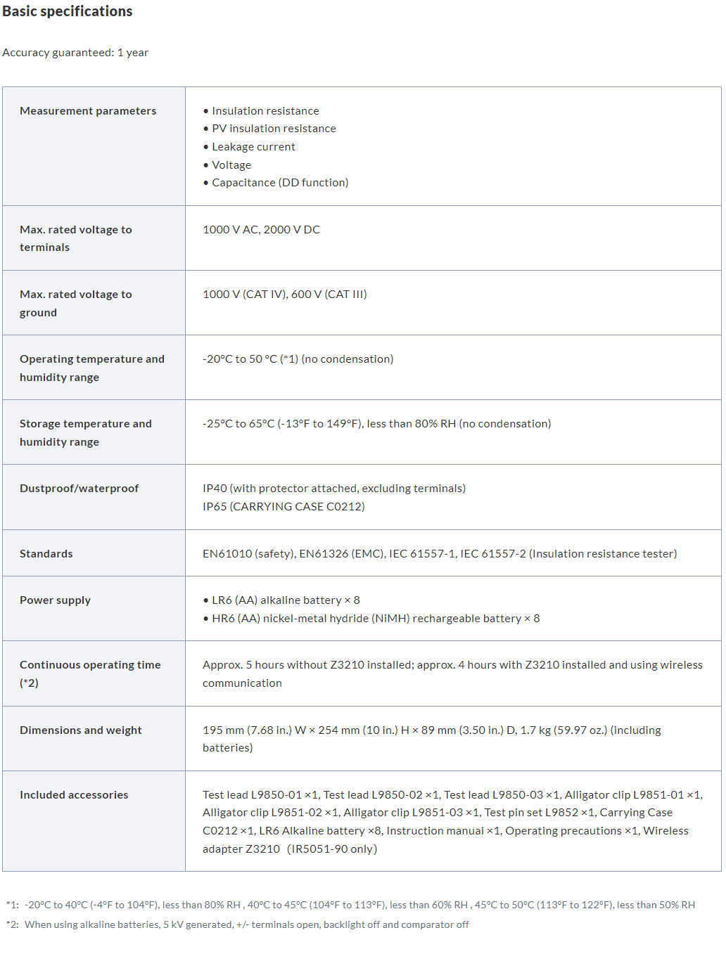 Hioki IR5051 带光伏功能的电子高压绝缘测试仪 1 年保修