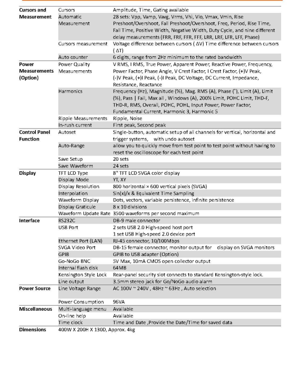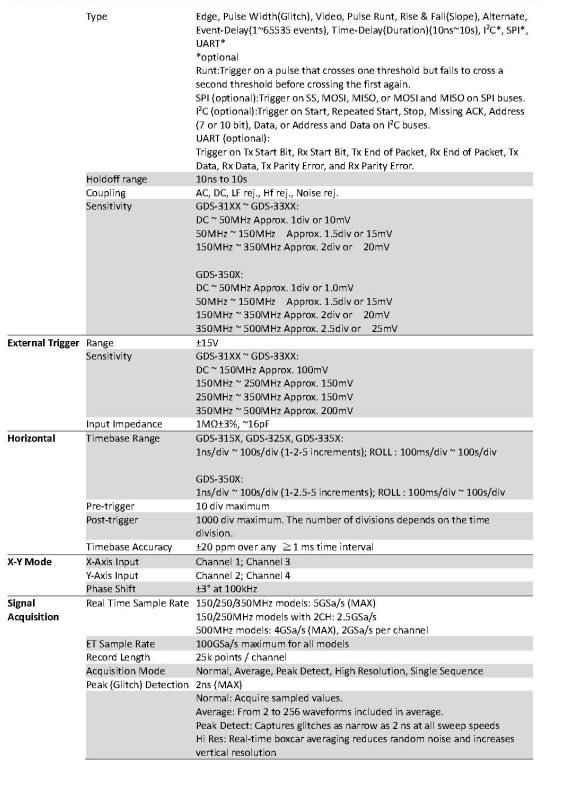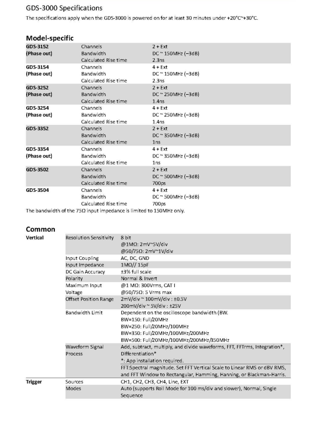 GW Instek Gds-3000 系列 Gds-3502 Gds-3504 数字存储示波器 500MHz 多通道