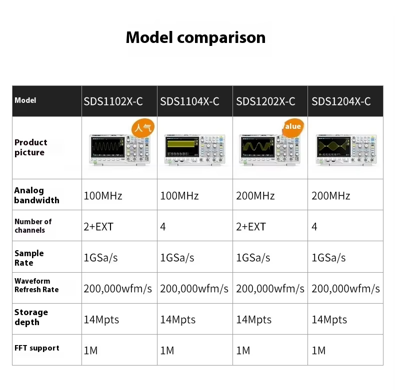 Siglent SDS1102/1202/1104/1204X-C 系列 8 位高分辨率数字存储示波器 100/200MHz 测试设备