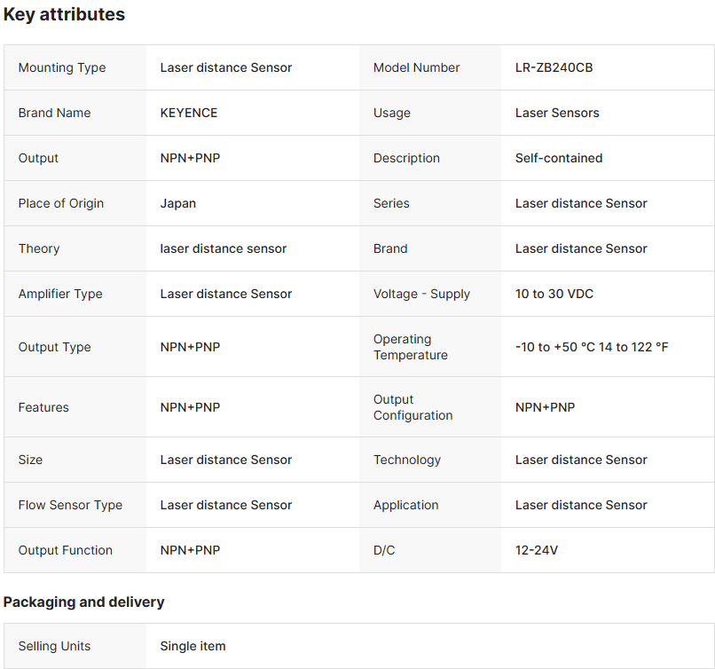 1 件 KEYENCE LR-ZB240CB 激光传感器