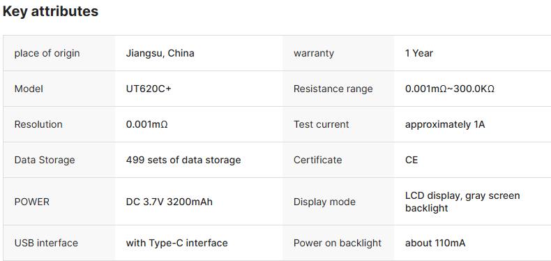 UNI-T UT620C+ 数字直流测试微欧表连接器/电机电阻测试仪