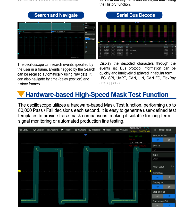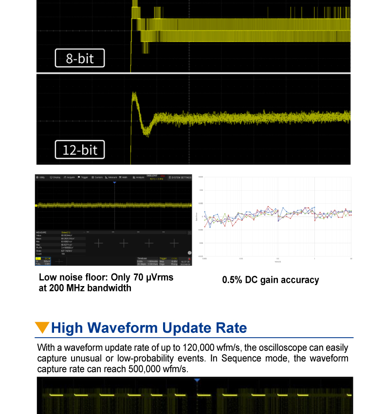Siglent SIGLENT 高分辨率 12 位数字存储示波器 SDS1072X 高清 70MHz 200MHz 带宽 2 通道 2GSa/s 120,000 波形/秒