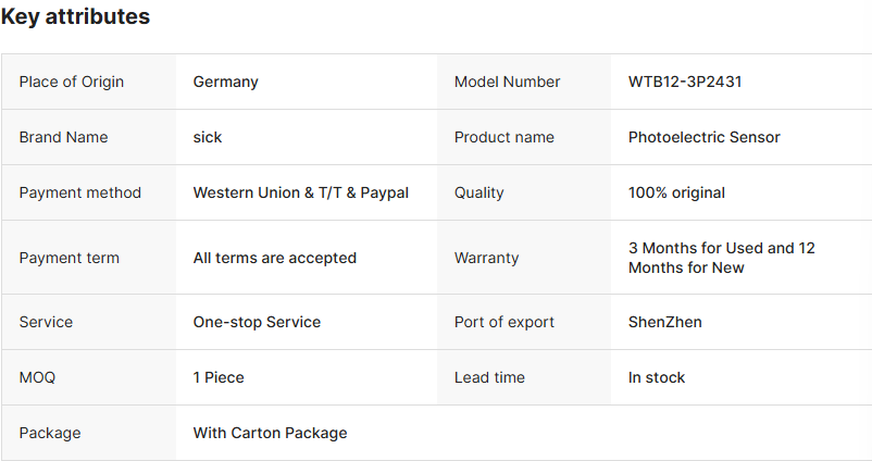 WTB12-3P2431 1 件全新 SICK WTB12-3P2431 光电传感器