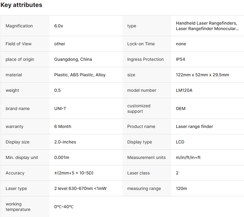 UNI-T LM120A 迷你激光测距仪手持式红外测量仪