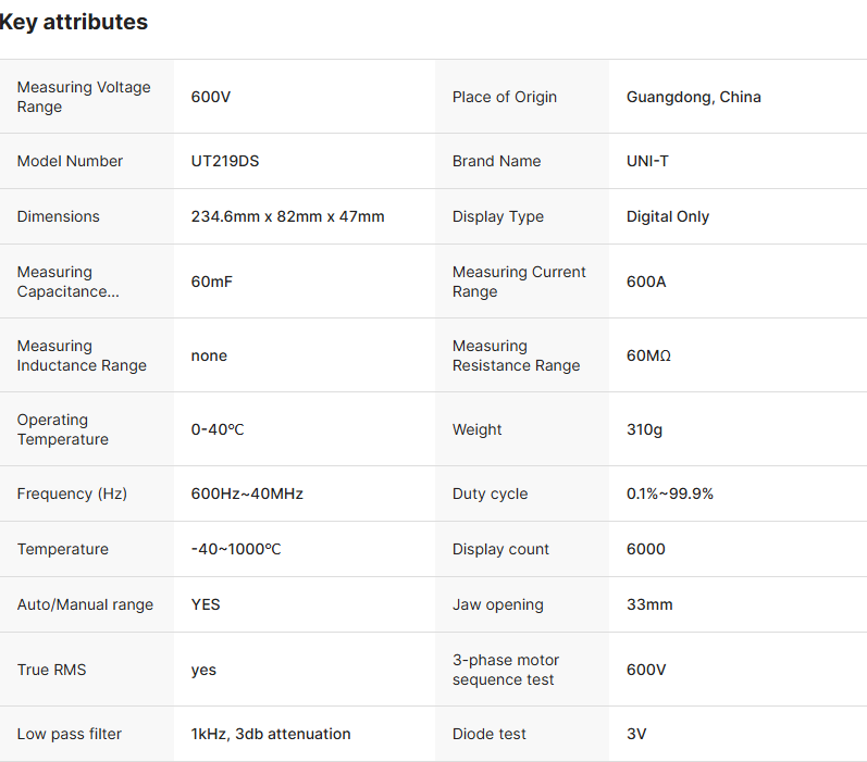 UNI-T UT219DS 专业钳形表 交流+直流电压 真有效值万用表 全新