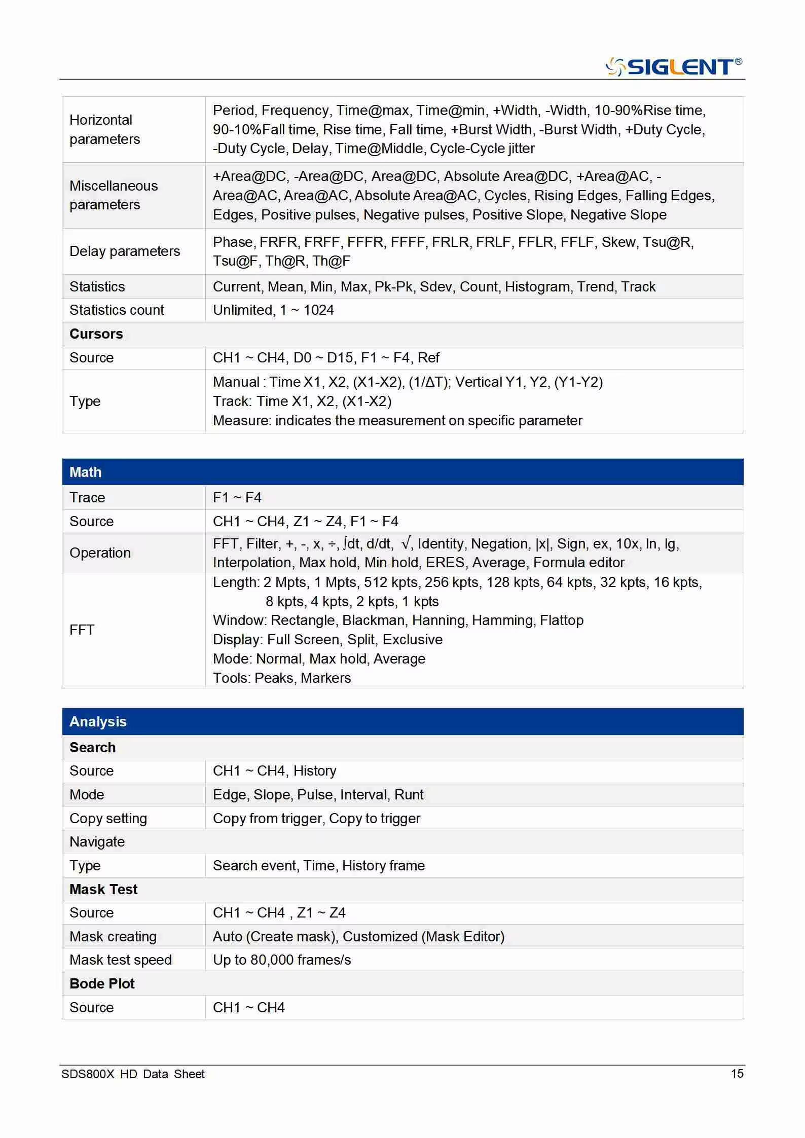 * Automatic measurements on 50+ parameters: supports statistics with histogram, track, trend, Gating measurement, and measurements on Math traces (2 Mpts Ref)