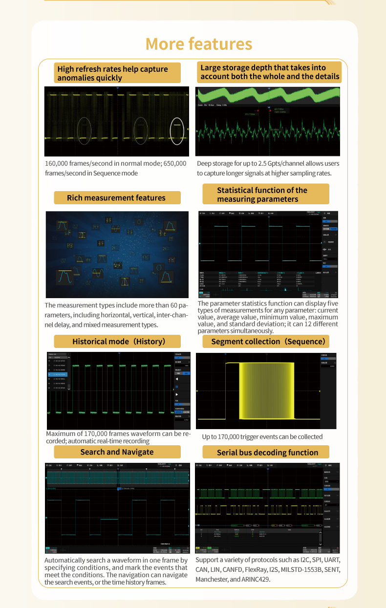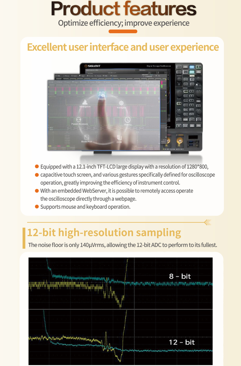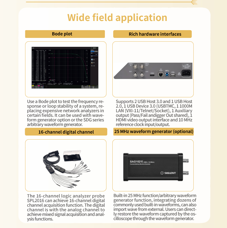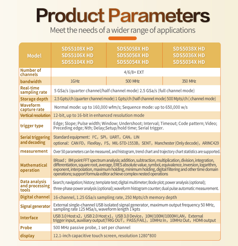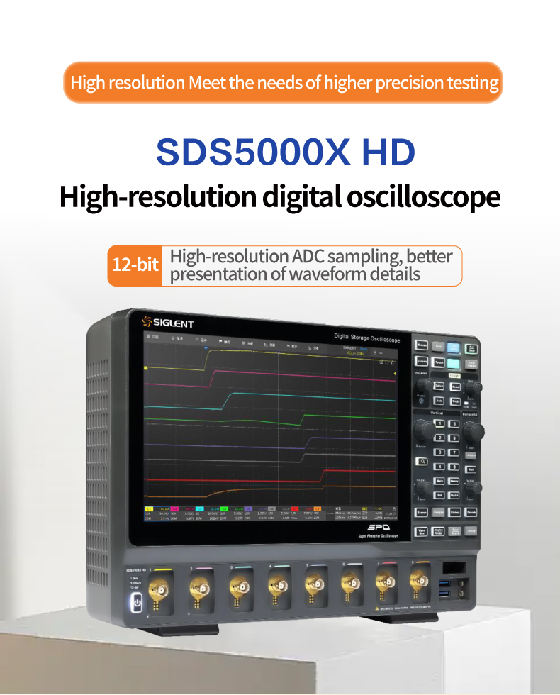Siglent 数字示波器 8 通道示波器 8 通道、1GHz 带宽 5GSa/s 超级荧光示波器 SDS5038X HD