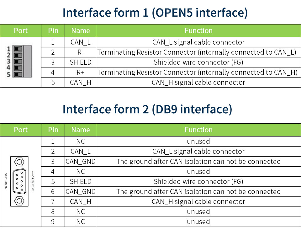 * CAN channel adopts electromagnetic isolation, DC/DC power isolation, isolation voltage: 2500VDC;