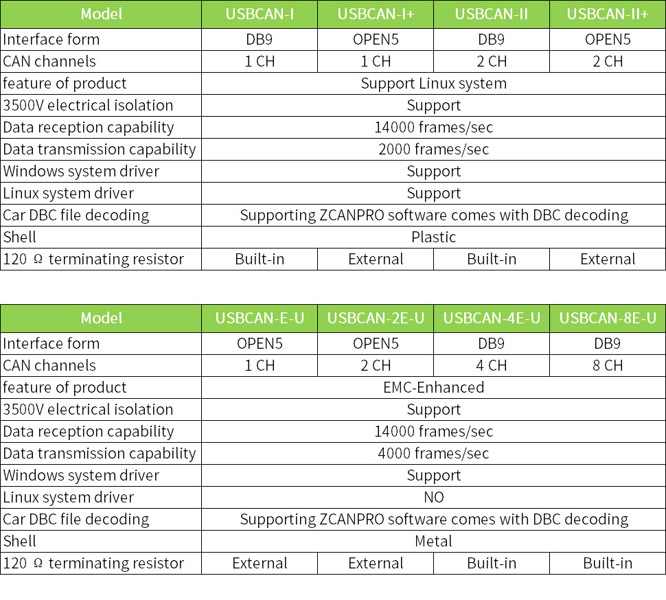 Model Number | USBCAN Series |