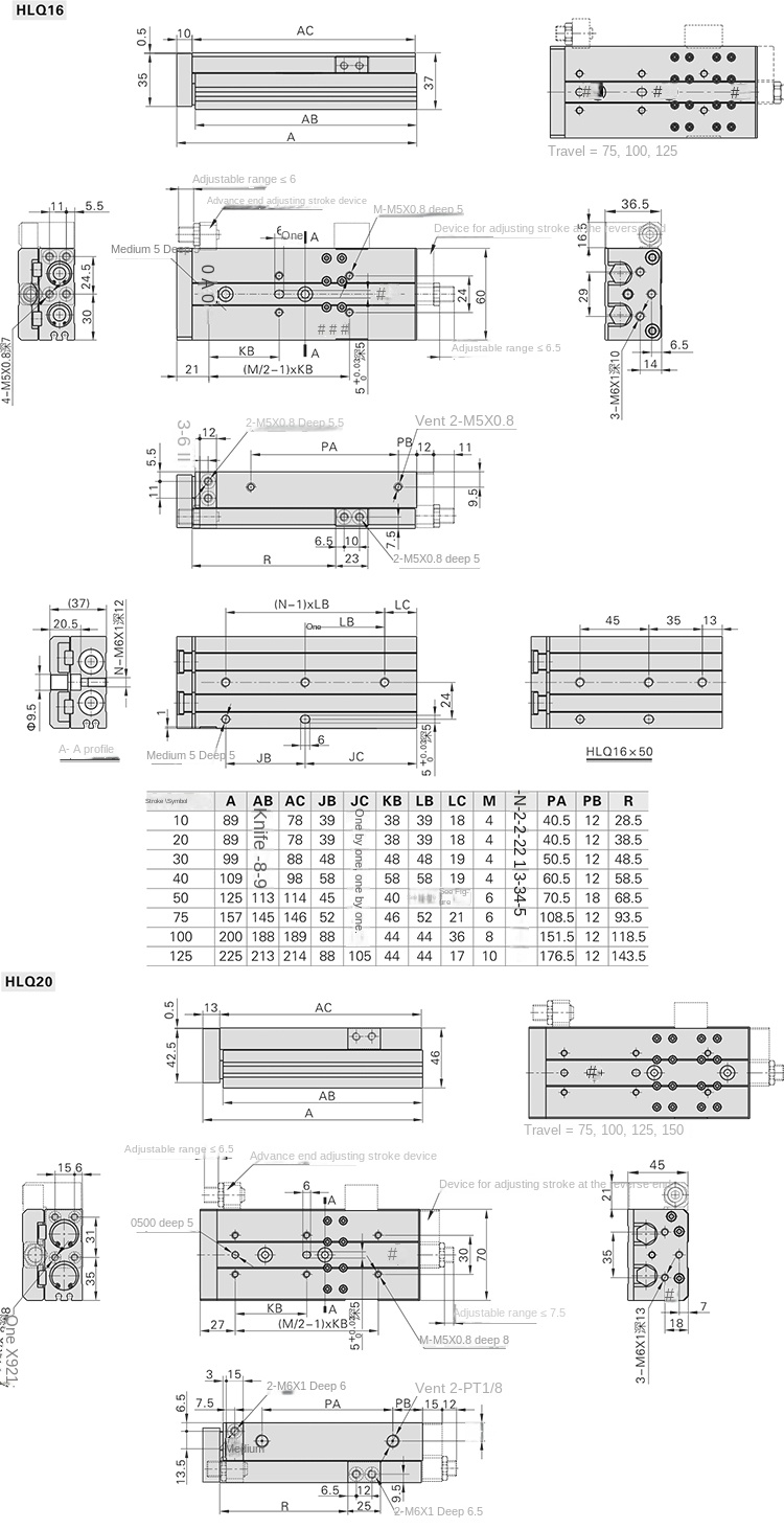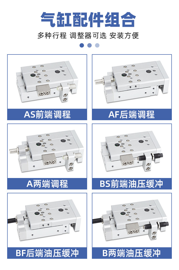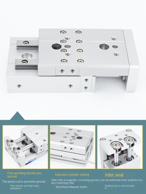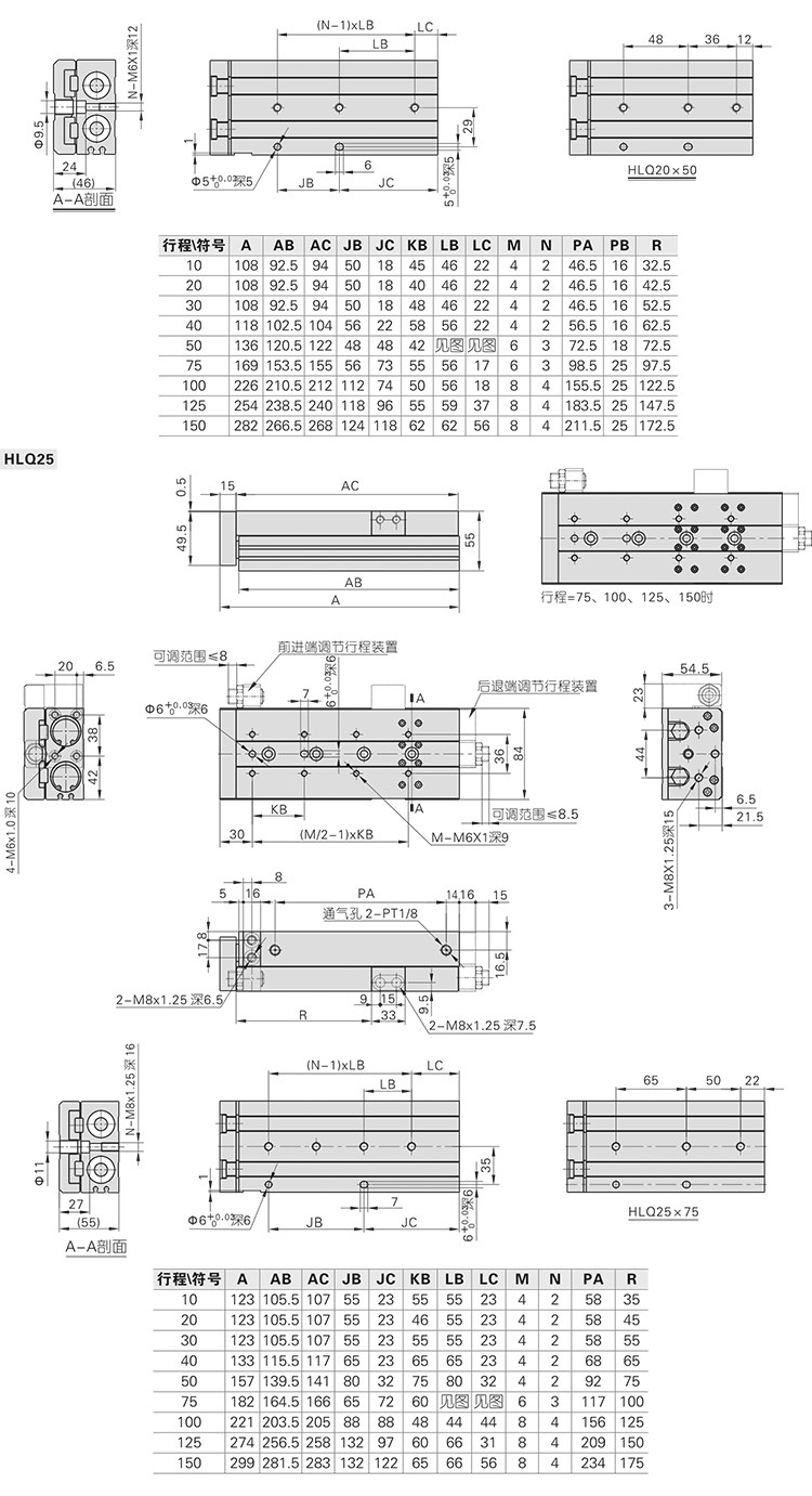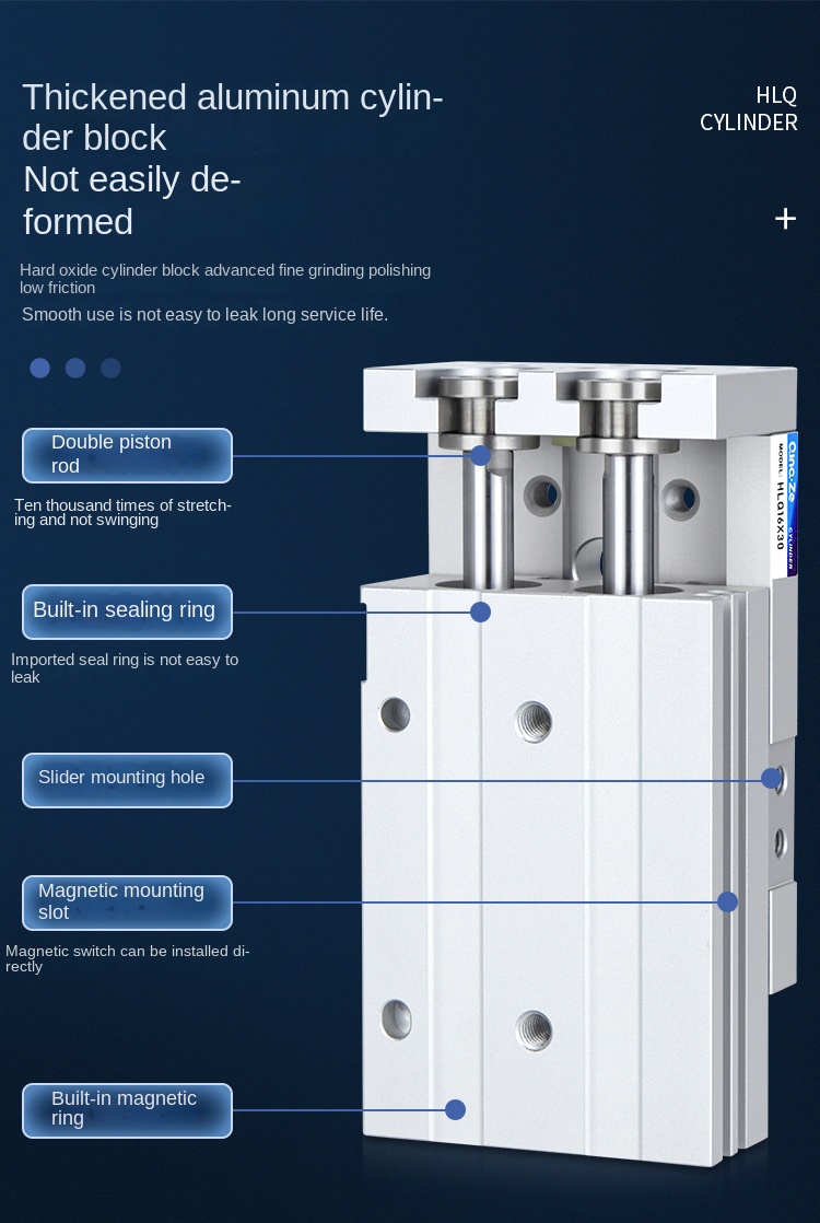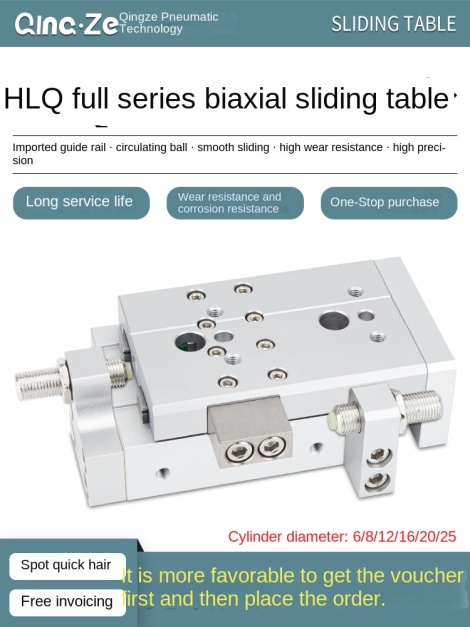 气动直线导轨滑台气缸 HLQ6/8/12/16/20-10/20/30/50/75/100SAS/SB 铝合金 中国本土