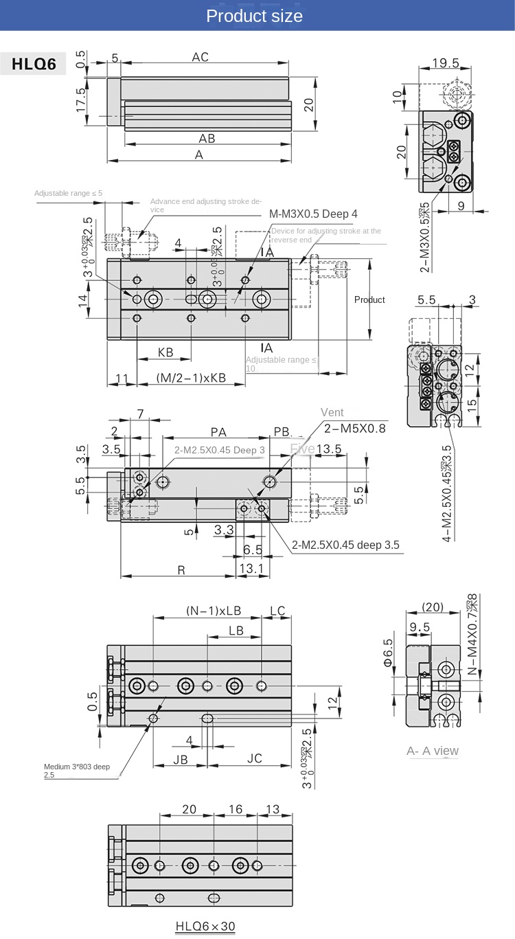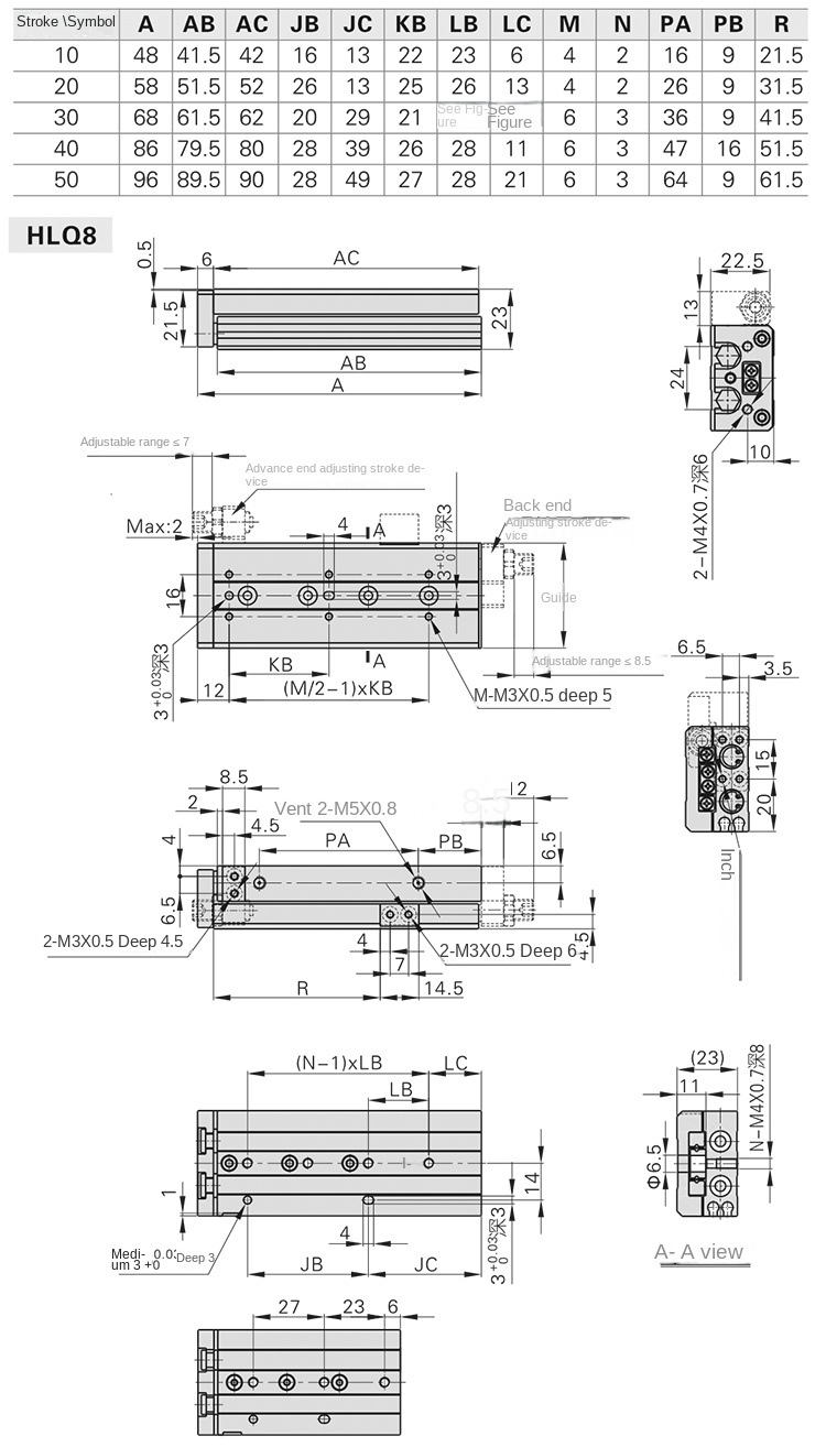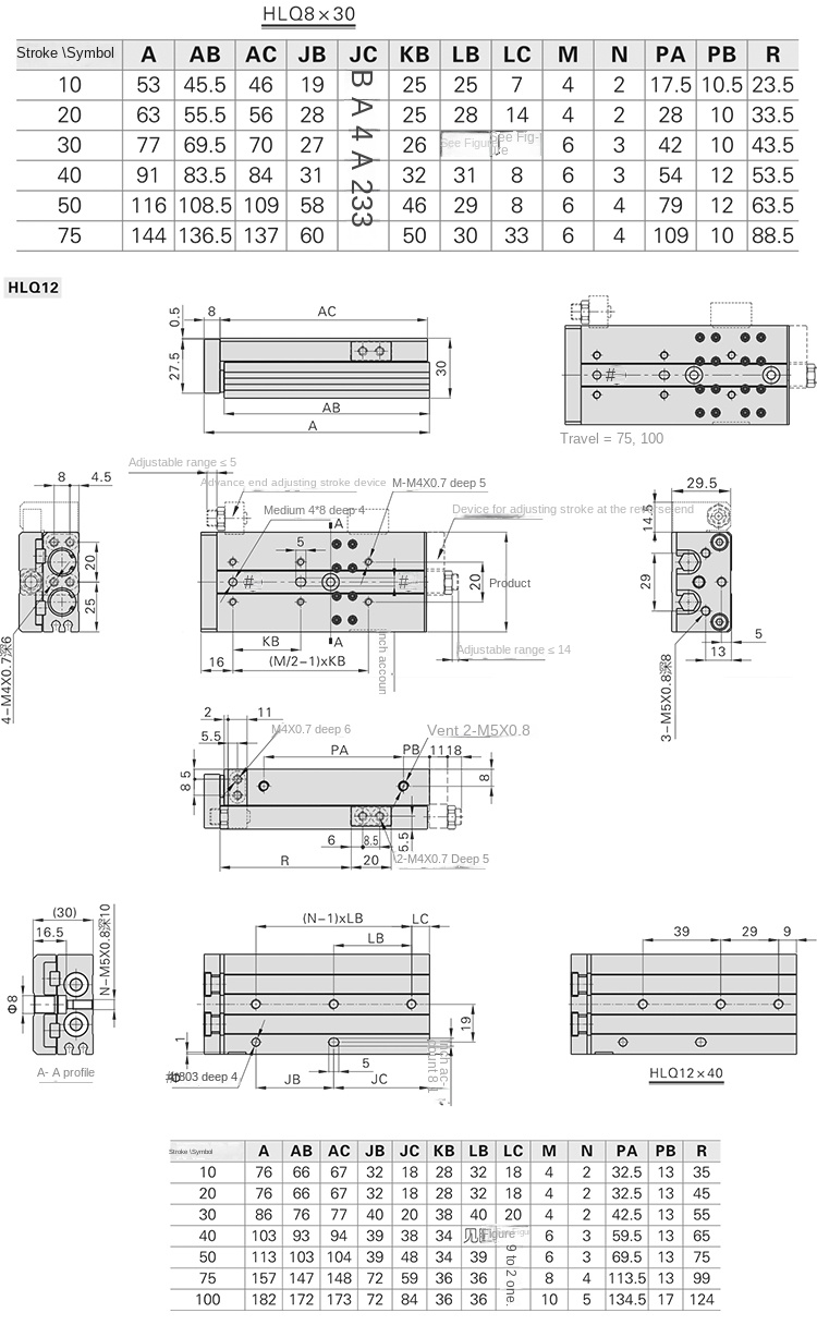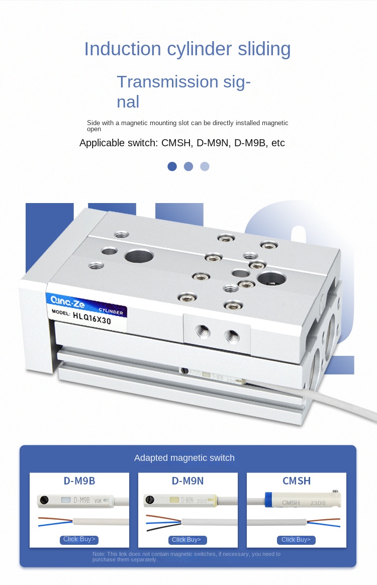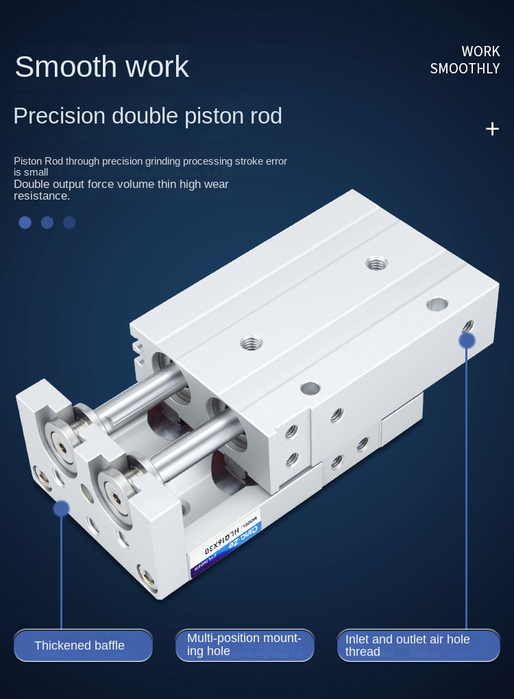 气动直线导轨滑台气缸 HLQ6/8/12/16/20-10/20/30/50/75/100SAS/SB 铝合金 中国本土