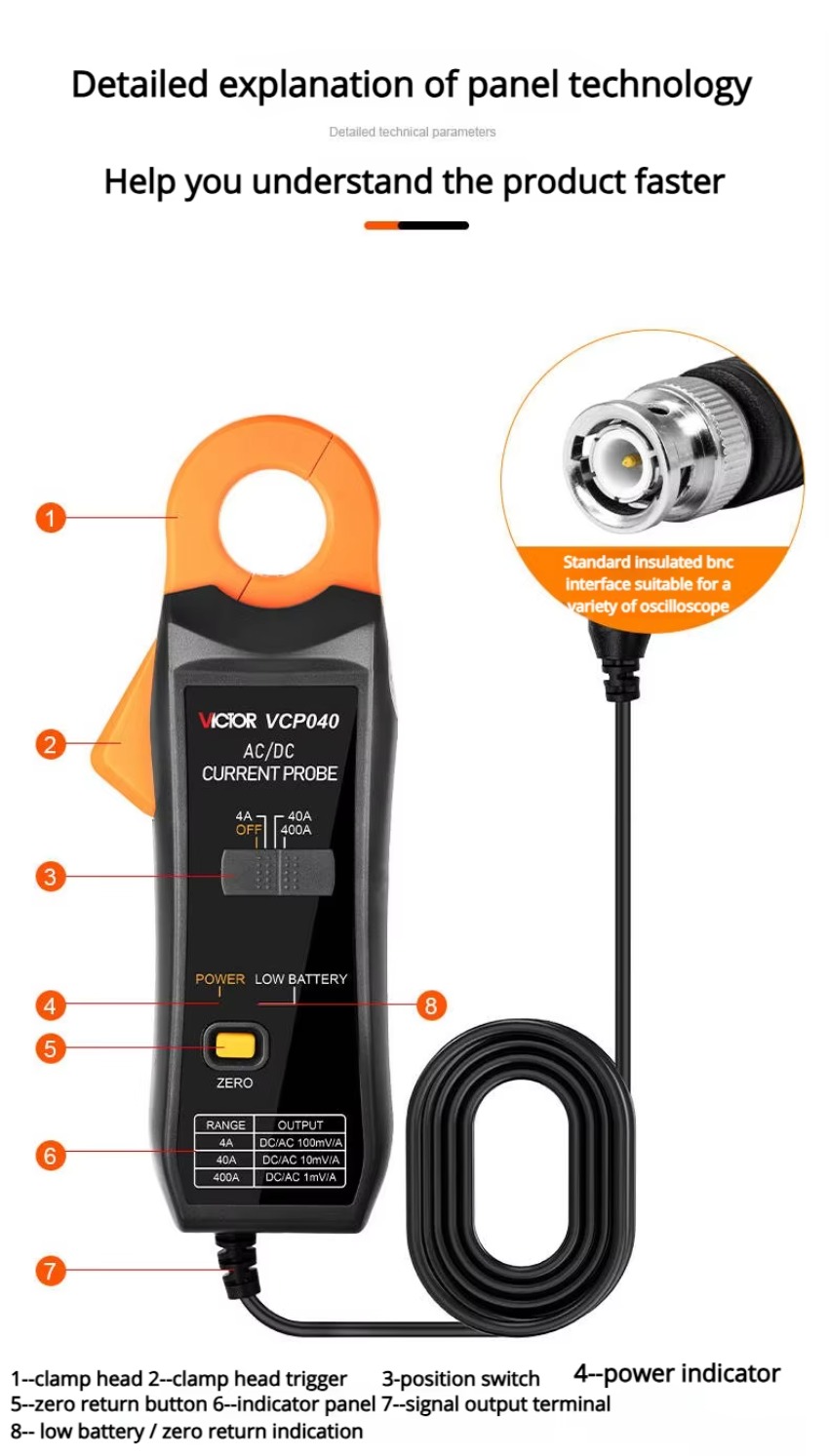盛利 VCP040 示波器电流探头 400A 交流/直流钳形电流探头