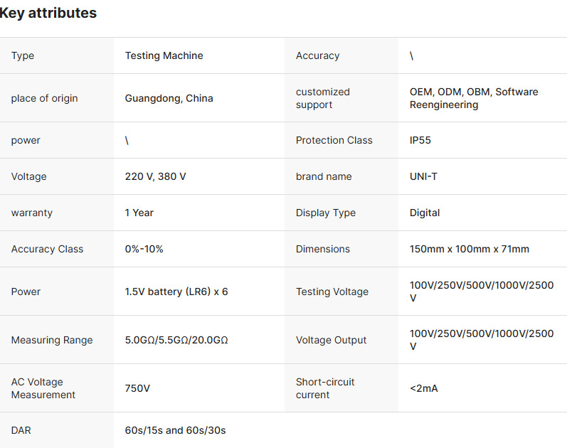 UNI-T UT501A 1000V 绝缘电阻表 接地测试仪 兆欧表 电压表