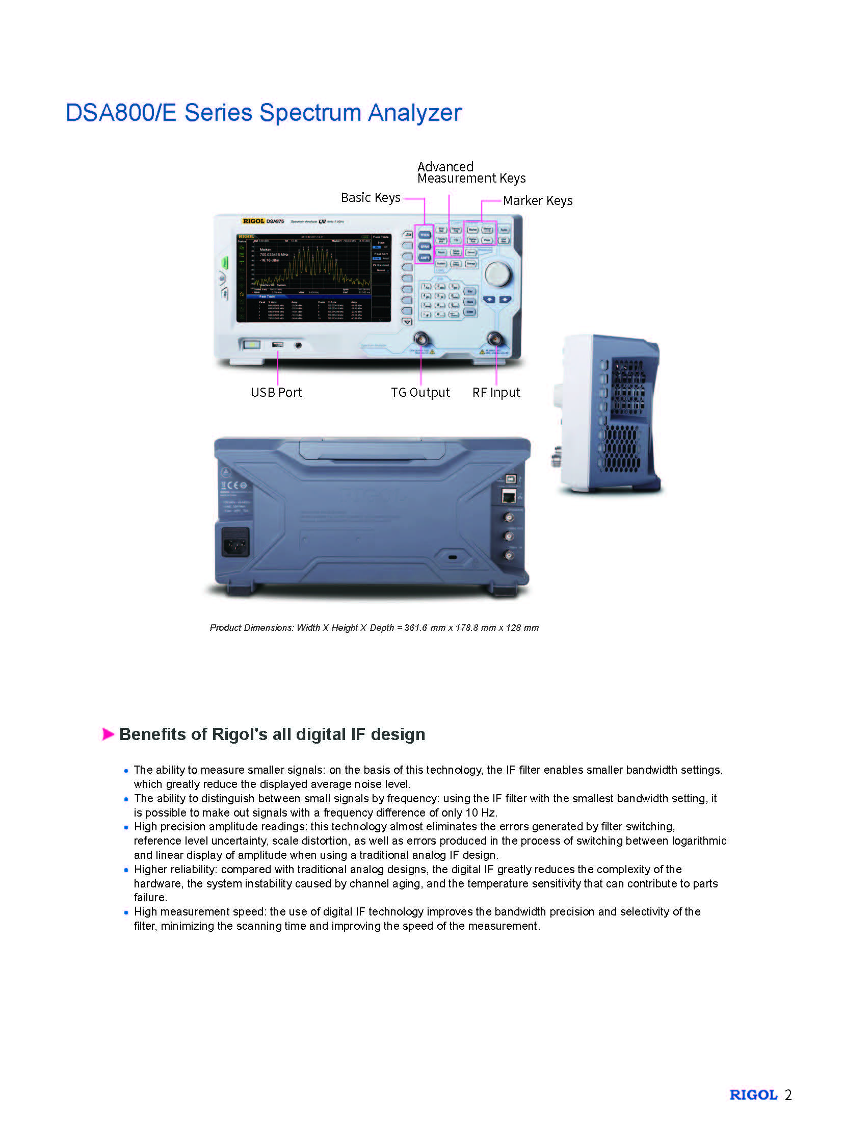 RIGOL PUYUAN 频谱分析仪 DSA815 9 kHz 2 1.5GHz -135dBm EMIR