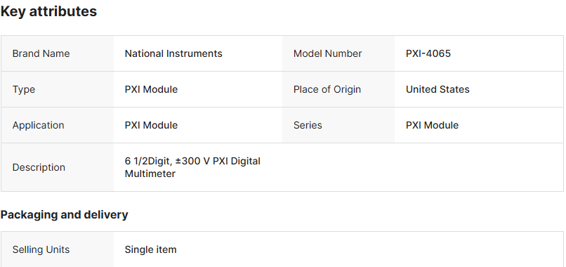 国家仪器公司 NI PXI-4065 工业级 6.5 位数字万用表