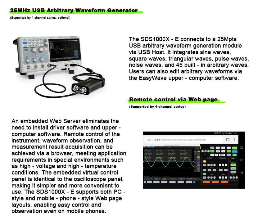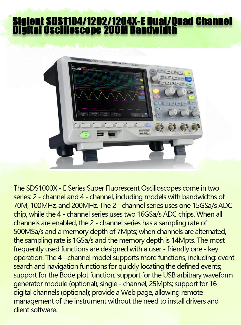 SDS1000X-E Series Super Fluorescent Oscilloscope 100MHz Bandwidth Bandwidth 200MHz 2-channel