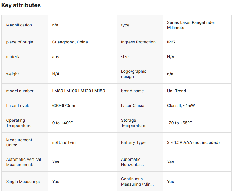 UNI-T LM80 激光测距仪 数字激光测距仪 激光测距仪