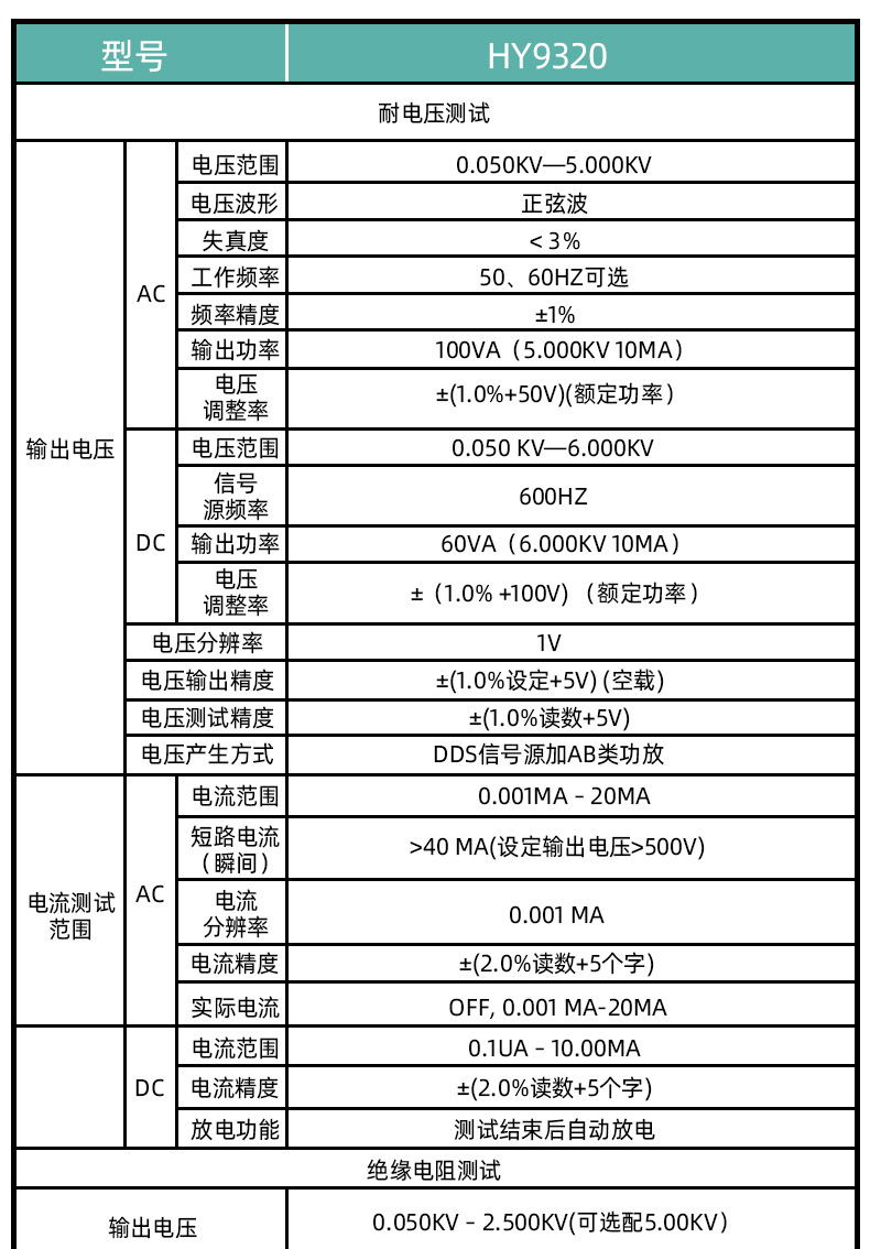 豪仪 HY9310/9320 交流/直流耐压和绝缘测试仪