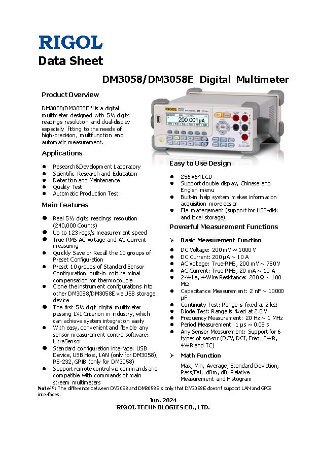 RIGOL DM3058 DM3058E 台式数字万用表 5.5位数字万用表 台式万用表