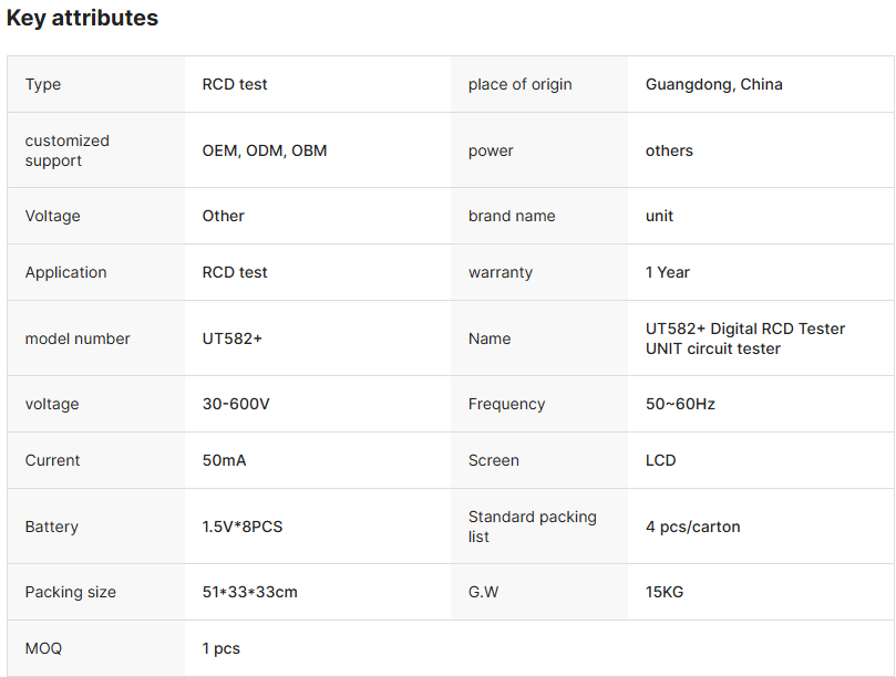 UNI-T UT582+ 数字 RCD ELCB 测试仪 自动升压漏电断路器