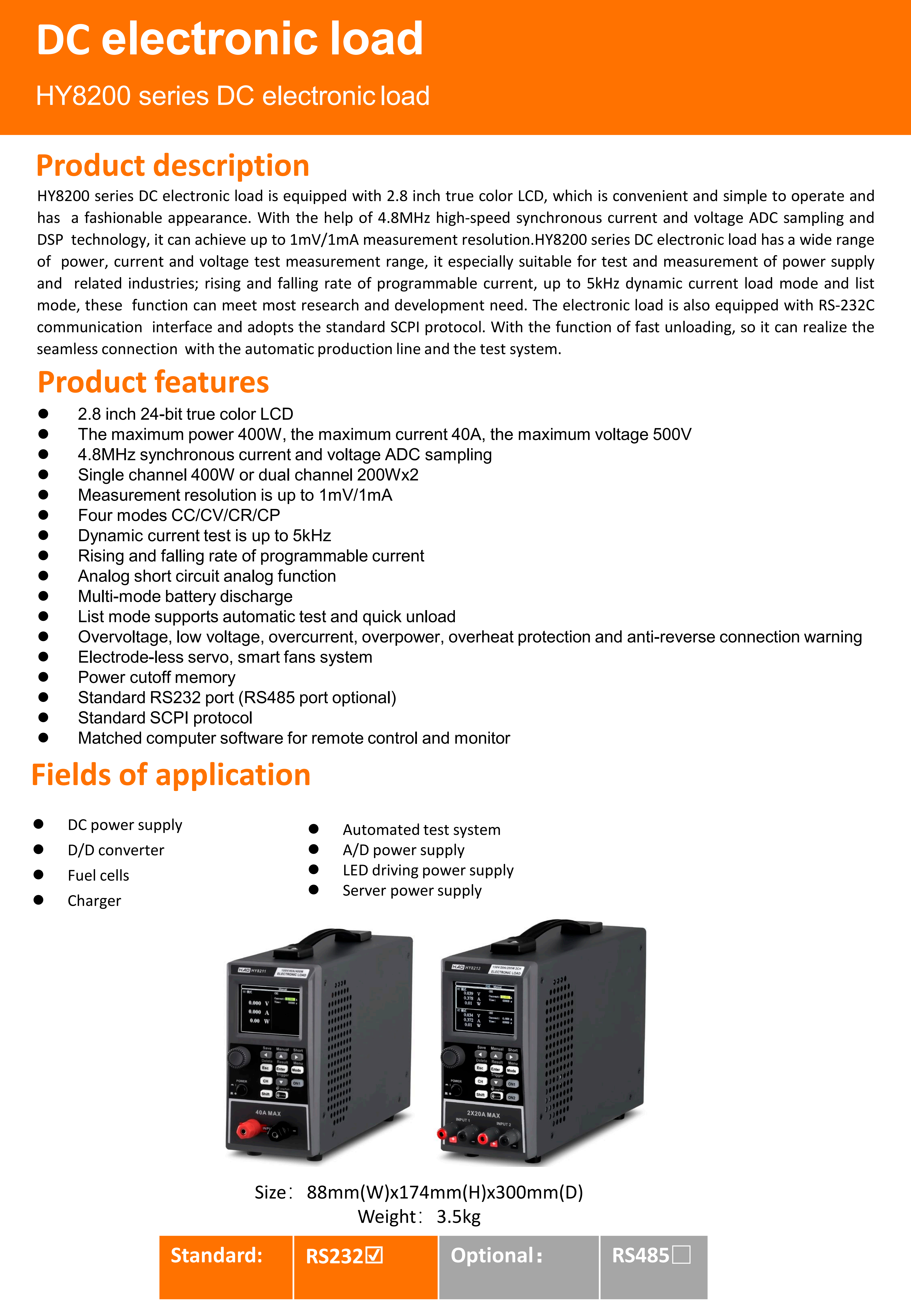 豪仪直流电子负载 400W HY8211/HY8212/HY8213