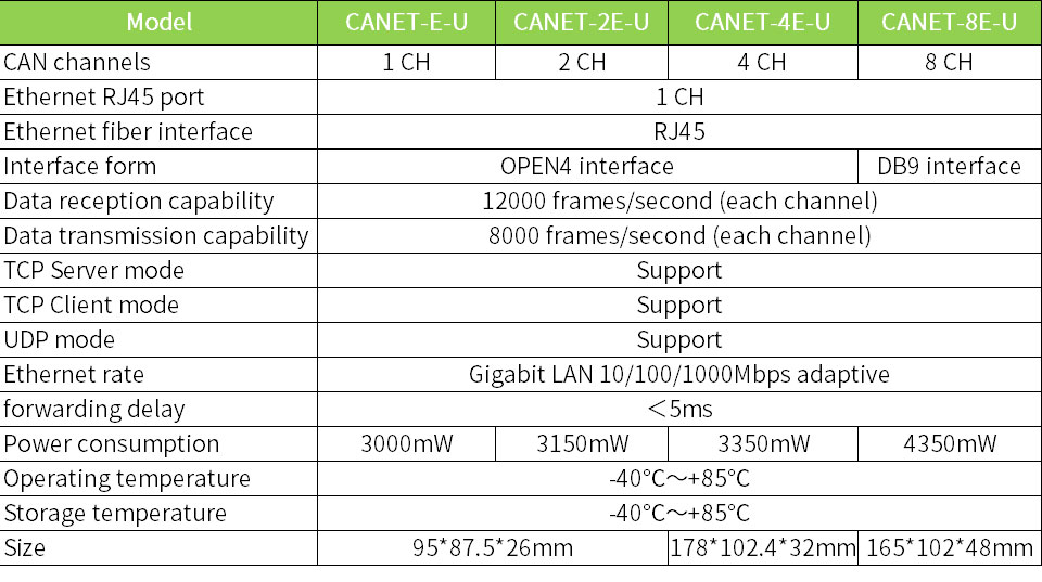 ZLG Zhiyuan Electronics CANET series Ethernet-CAN converter realizes the function of mutual transmission of CAN-bus data and Ethernet data. It integrates 1/2/4/8 channel CAN-bus interface and 1Ethernet or optical fiber interface, and comes with With TCP/IP or UDP protocol stack, users can easily complete the interconnection between CAN-bus network and Ethernet network, establish a two-layer Ethernet-CAN network architecture, realize remote control, and greatly expand the application scope of CAN-bus network. CANET series has the following characteristics;