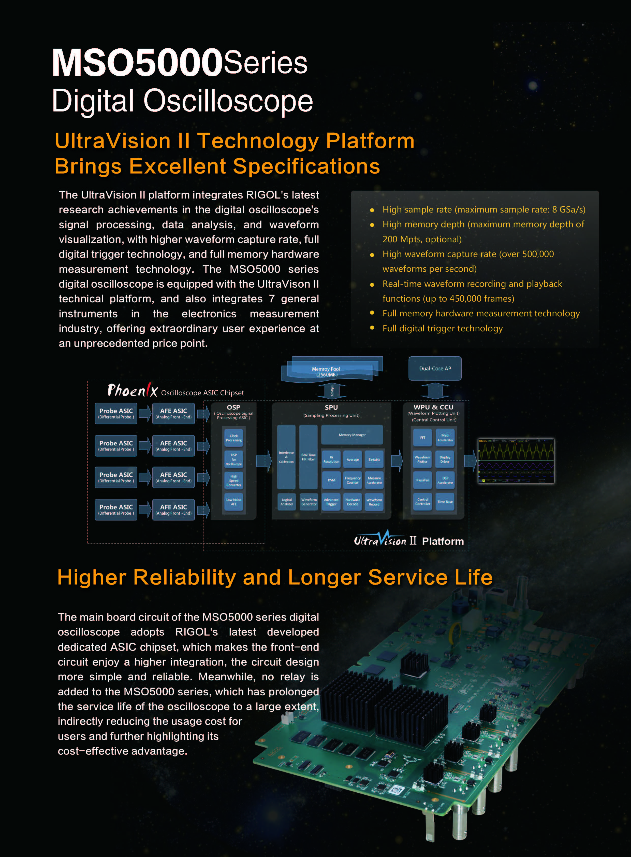 RIGOL MSO5204 200MHz 4通道混合信号示波器,具有8GSa/s采样率和16个数字通道