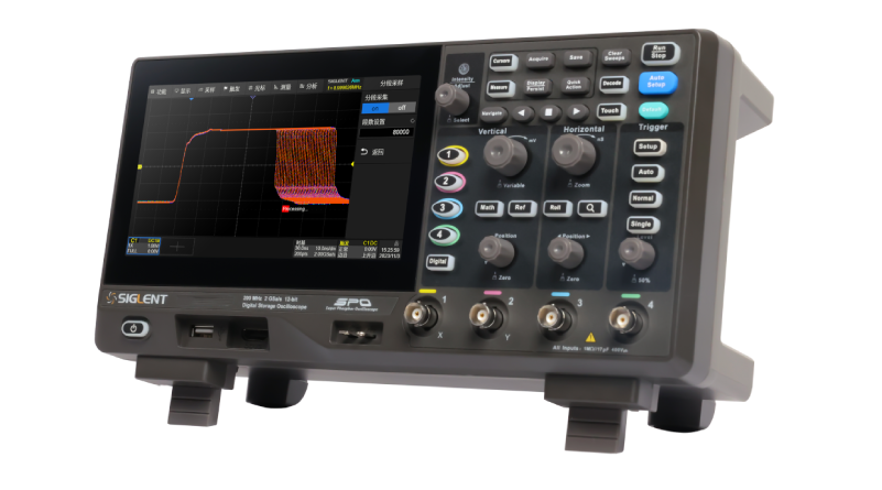 Siglent 便携式数字四通道示波器,200MHz,2GS/s 采样率,100Mpts 存储,12 位分辨率,7 英寸触摸屏