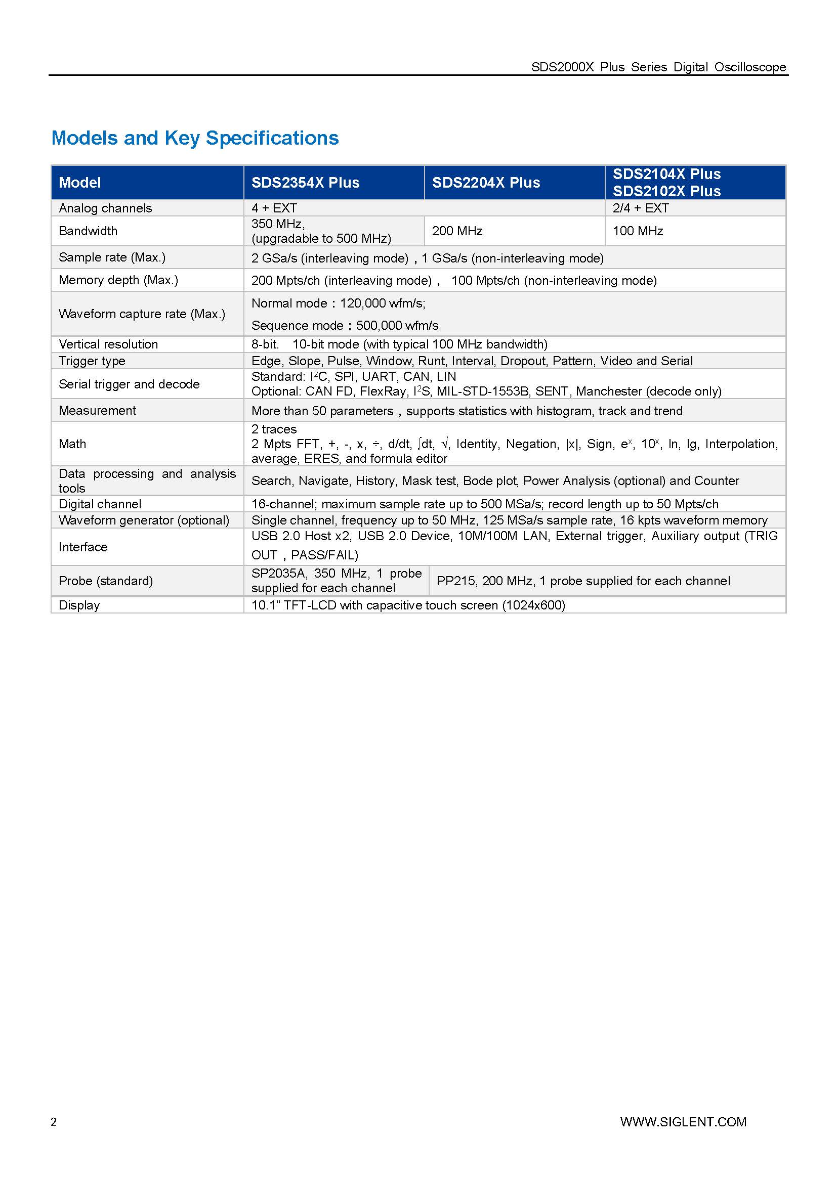 Siglent SDS2354X Plus 350MHz 4通道数字示波器,带超荧光显示屏,2GSa/s 200Mpts 分辨率