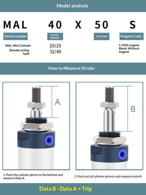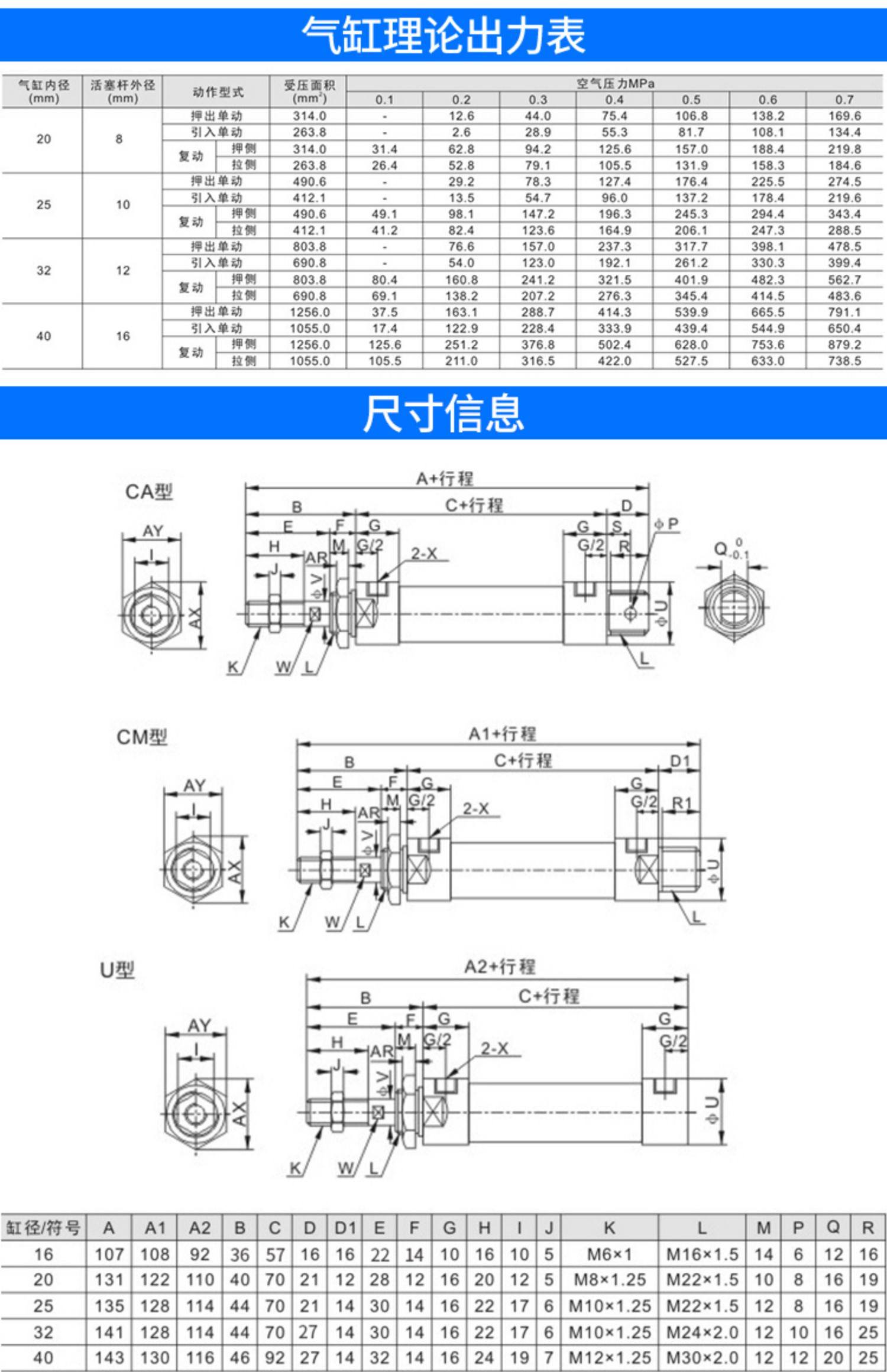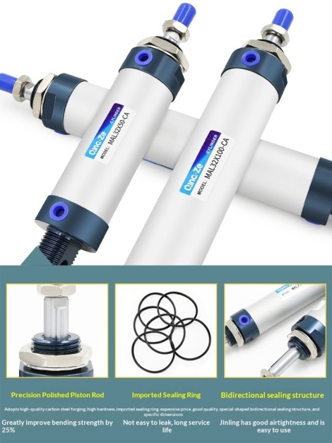 迷你圆形小型铝合金气缸 MAL16 20 25 32 40X25X75X100X150X200X50