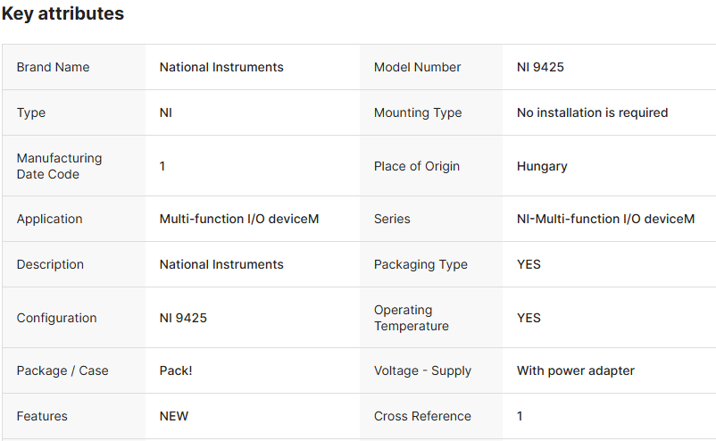 National Instruments NI 9425 cDAQ 数字输入模块,24V 32通道,带盒装