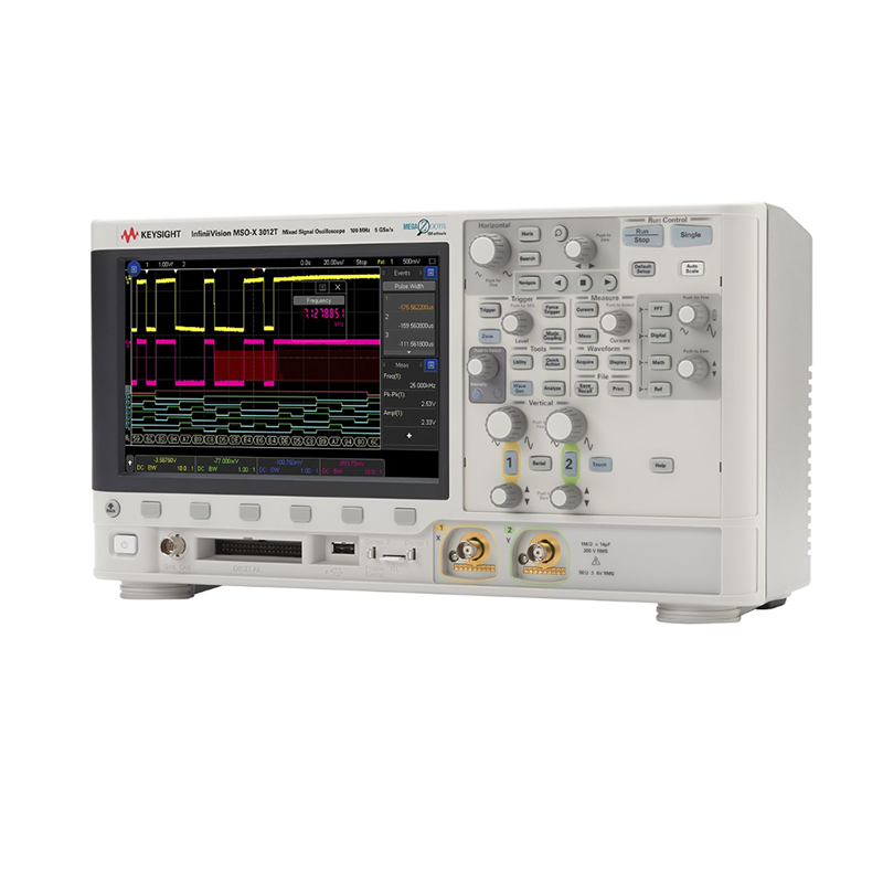 Make Measurements You Can TrustThe 3000T X-Series oscilloscopes offer our high-end technology in a smaller form factor, with an extremely intuitive touch user interface. With an industry-leading waveform update rate, you can capture elusive glitches and anomalies not possible on other oscilloscopes. Combined with our extensive set of software options and probes, the 3000T X-Series enables you to make measurements you can count on.PathWave BenchVue oscilloscope software for remote control, data logging, and automated testingAchieve 100 MHz to 1 GHz of bandwidthSee the most signal detail with 1,000,000 waveforms/second update rateIsolate signals in seconds with zone touch triggeringDecode serial buses faster with hardware-based serial analysis optionsTest faster with simplified operations and intuitive user interface enabled by an 8.5-inch capacitive touch screen
