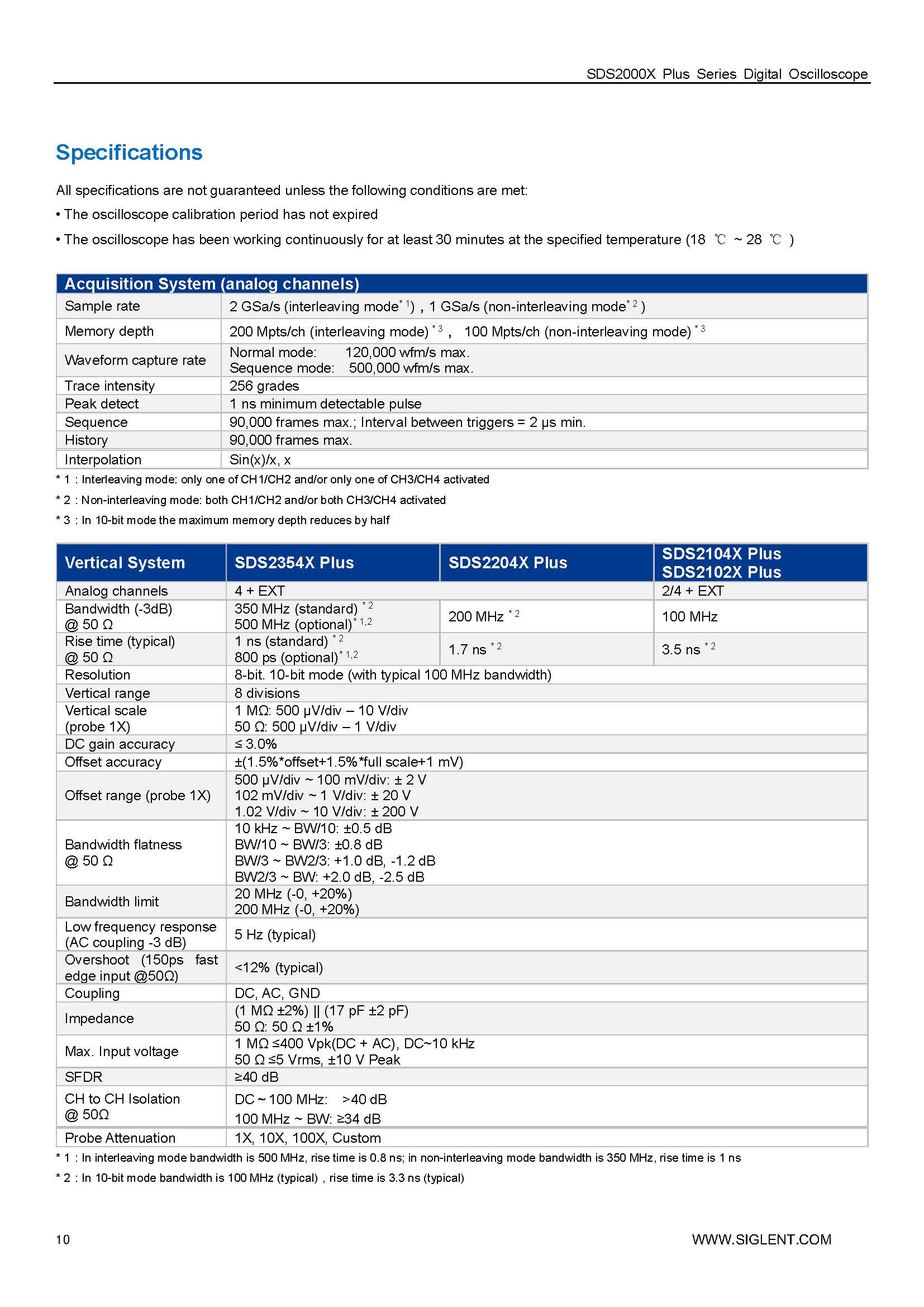 Siglent SDS2352X Plus 350MHz 2通道 2GSa/s 10位分辨率超荧光示波器,带200Mpt功能