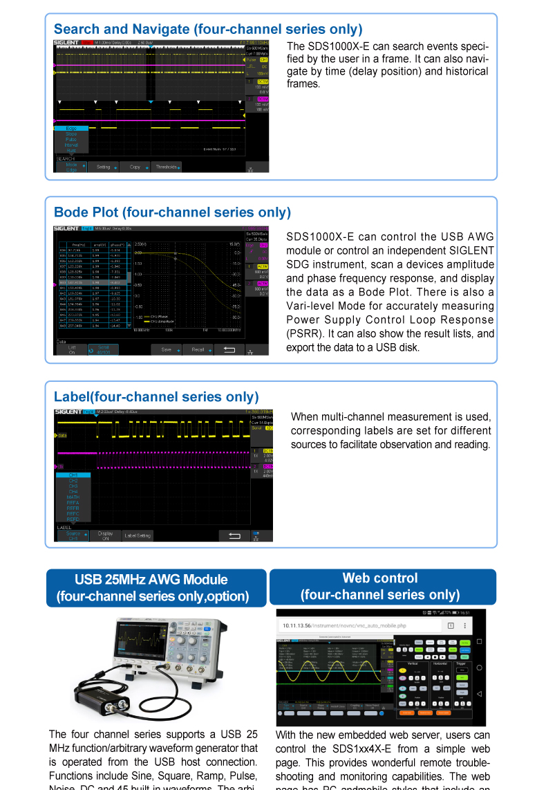 Siglent SDS1072/1074/1102/1104/1202/1204X-E 数字存储示波器 8位/1Gsa/s 100MHz 2-4通道 14Mpts存储