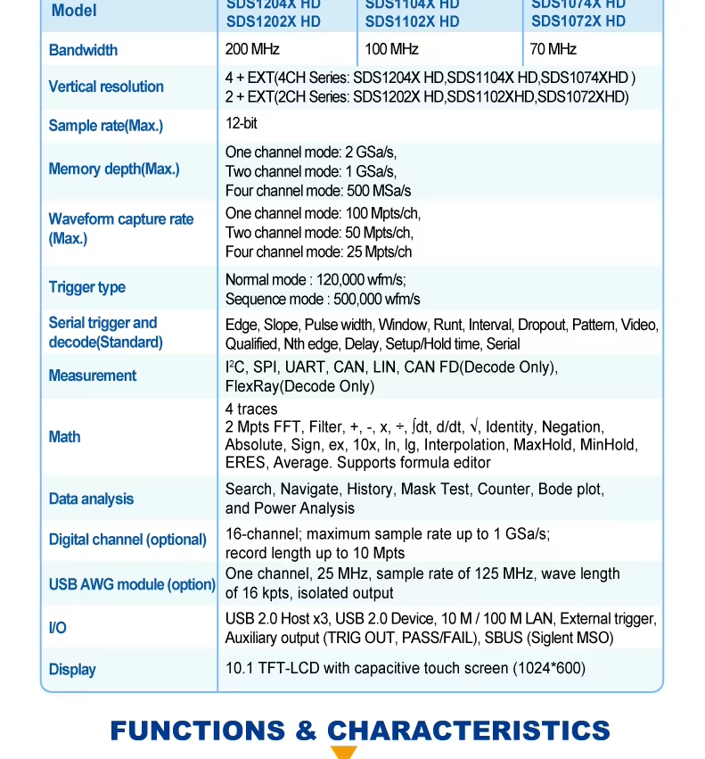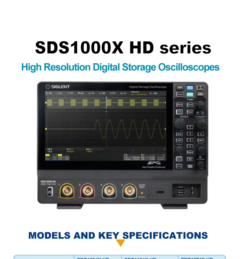 Siglent 高分辨率数字存储示波器 SDS1102X/SDS1204XHD 200 MHz 带宽 2 GSa/s 采样率 OEM 10.1 英寸显示屏 1