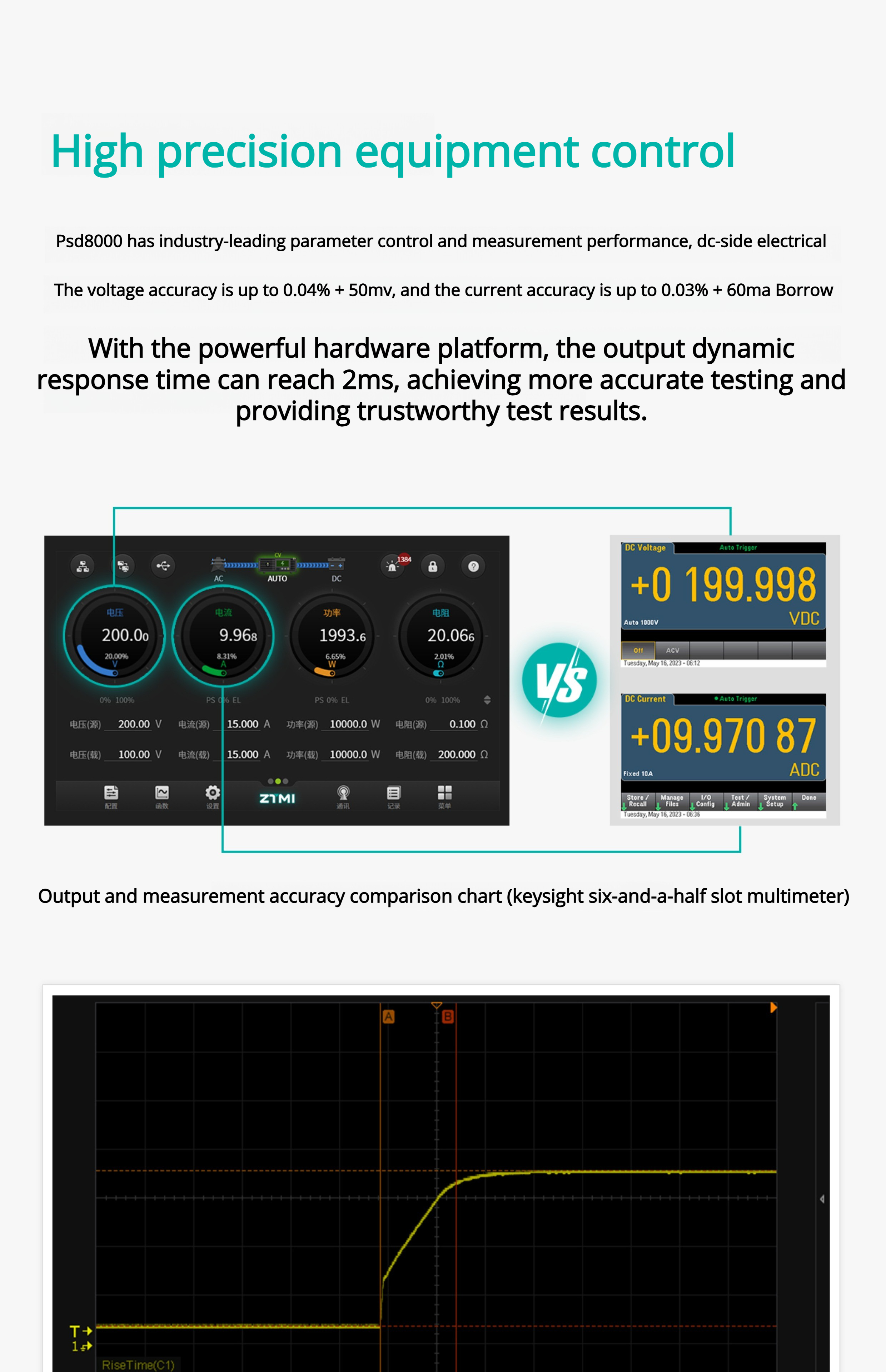 This ultra-high-performance DC power supply solution product adopts a 18-bit ADC, featuring precise and comprehensive measurement capabilities. It can handle both steady-state signal measurement and transient signal capture, while ensuring the system has high precision, low noise, and high dynamic performance.