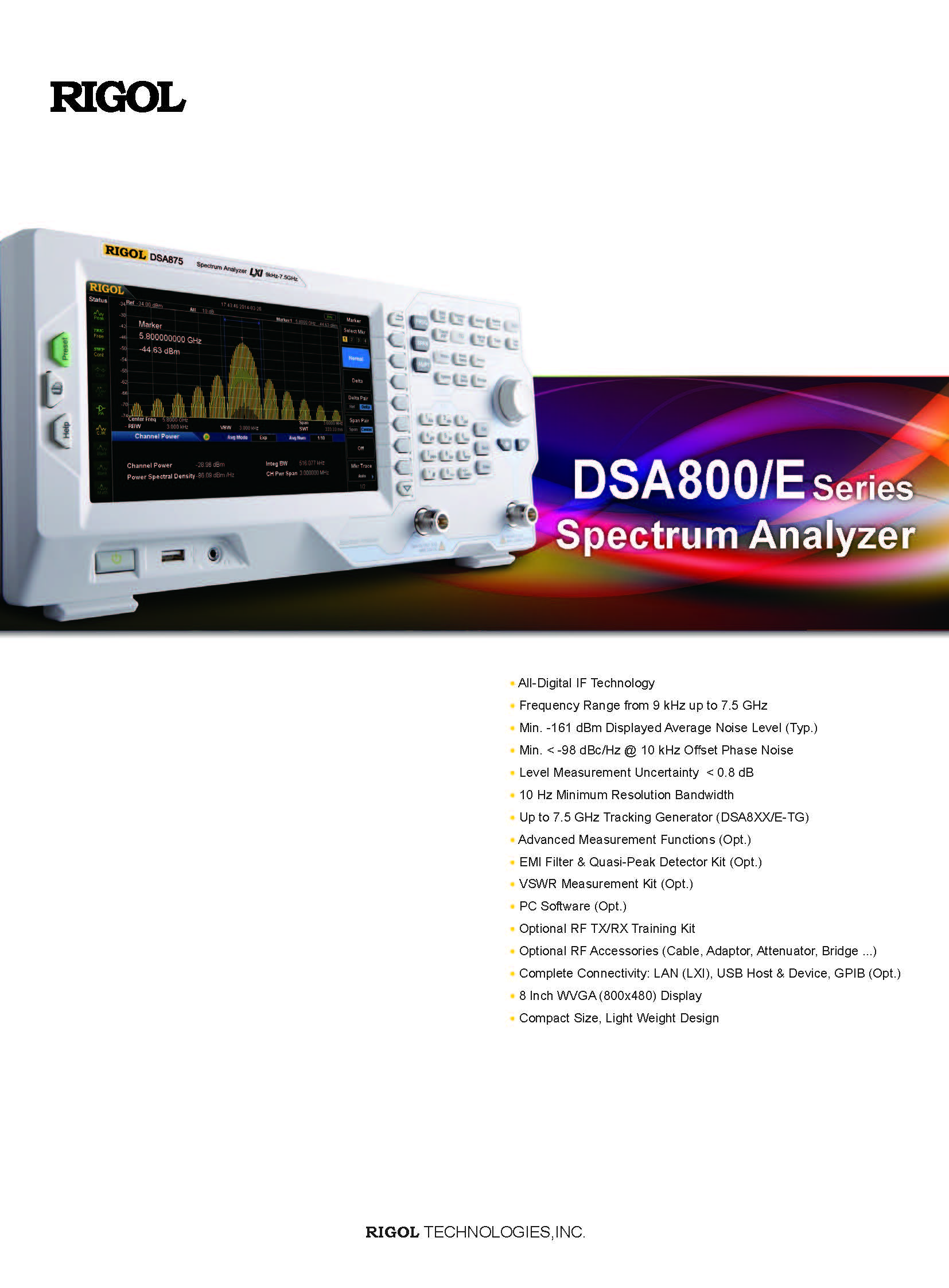 • 颜色: DSA875-TG 9千赫~7.5GHZ