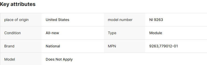 国家仪器公司 NI-9263 模拟输出模块 4 通道 16 位
