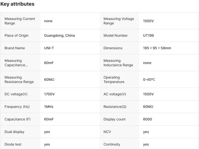 UNI-T UT-196 1700V 直流真有效值数字专业万用表带背光