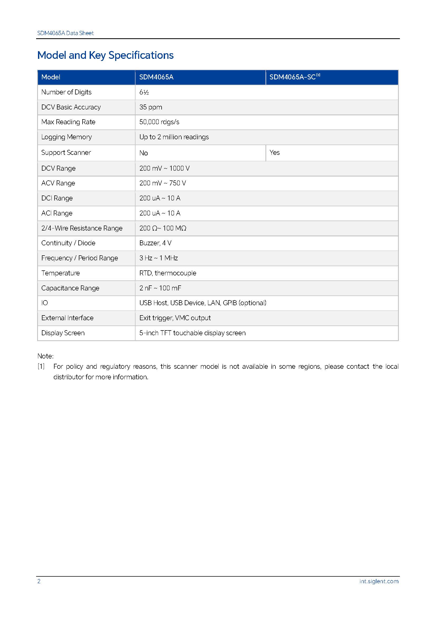 Siglent SDM4065A/SDM4065A-Sc 高速双显6.5位自操作数字万用表电子测量仪器