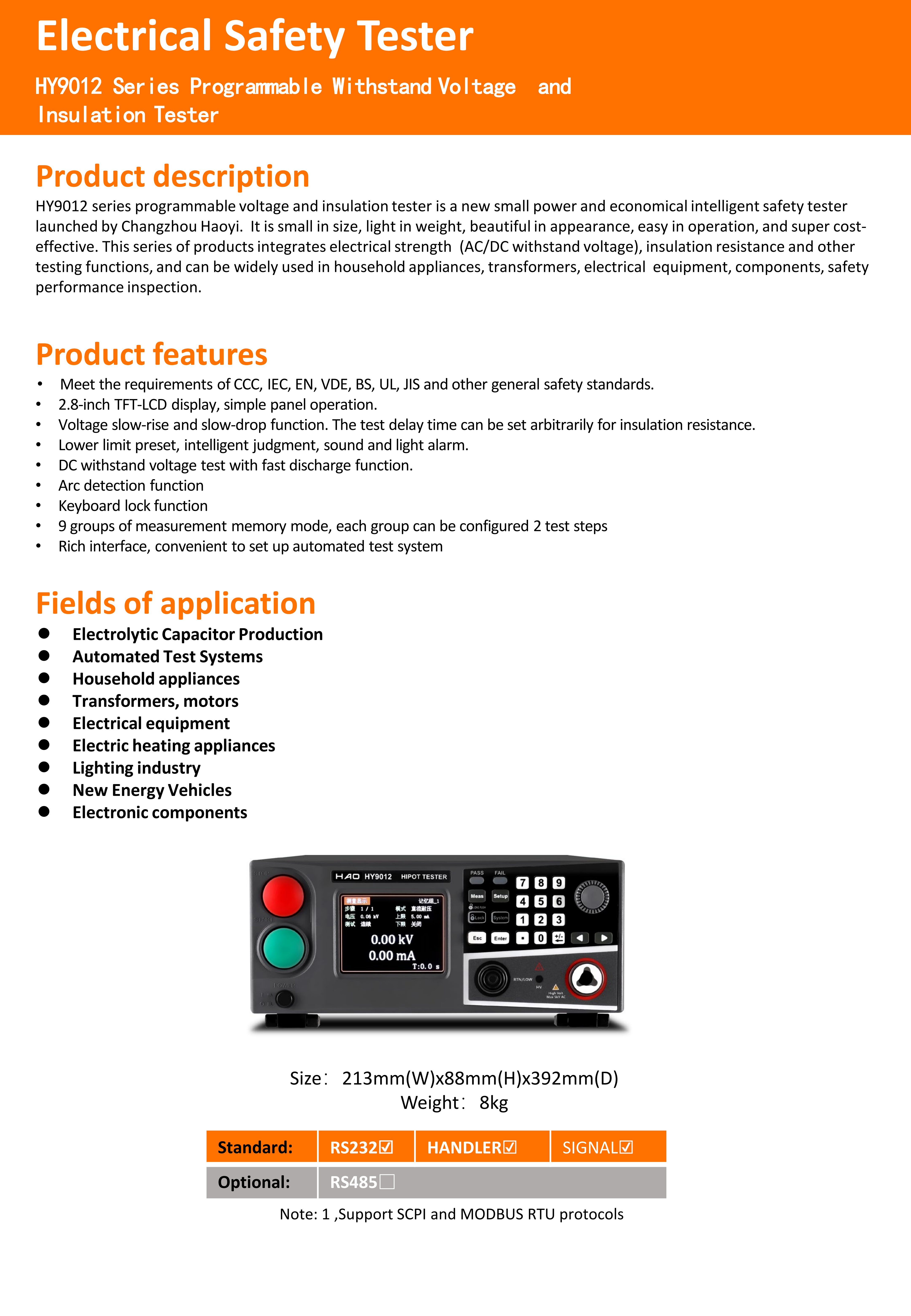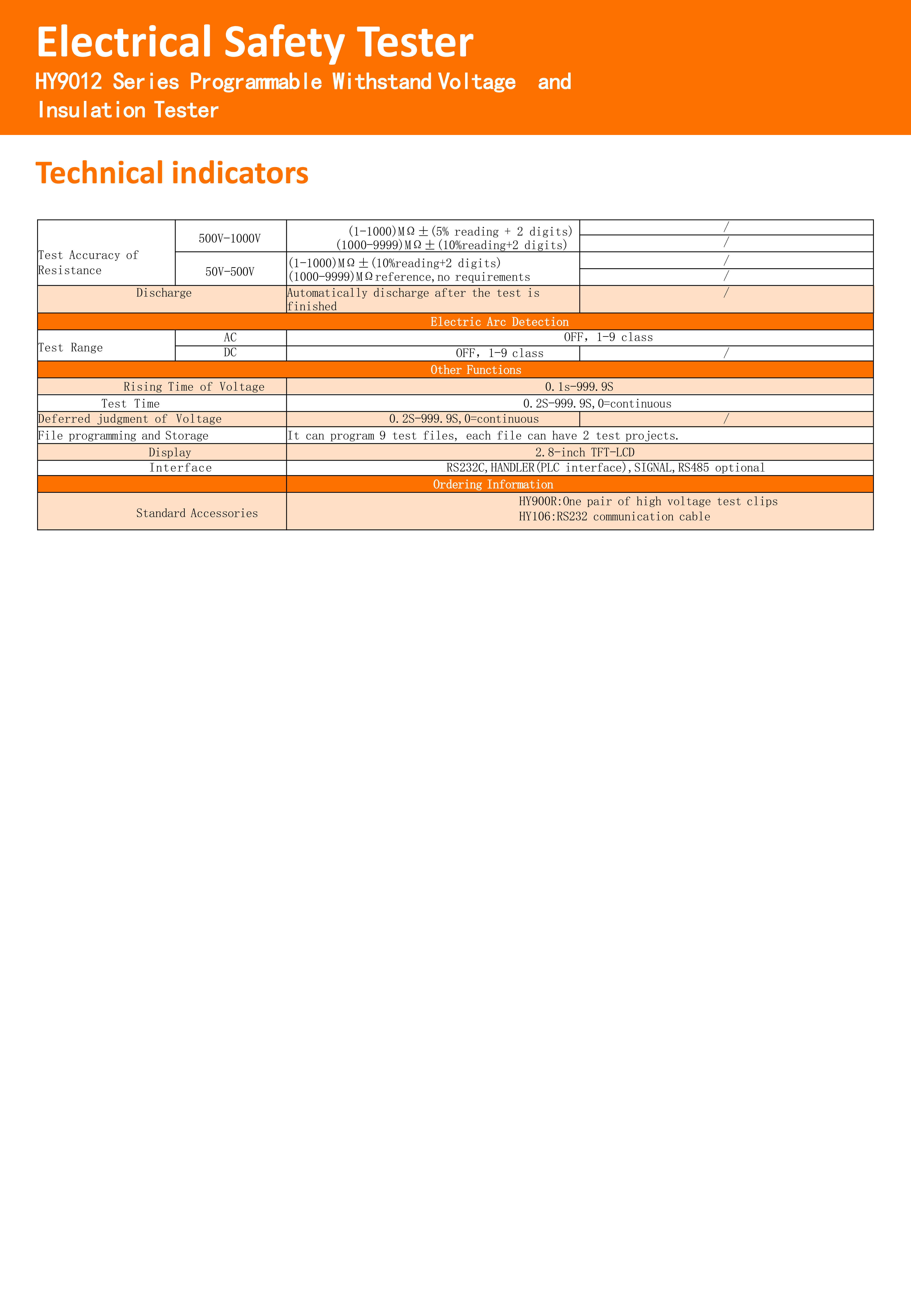 豪易HY9012/HY9012B交流/DC耐压绝缘测试仪,可编程电气安全测试仪
