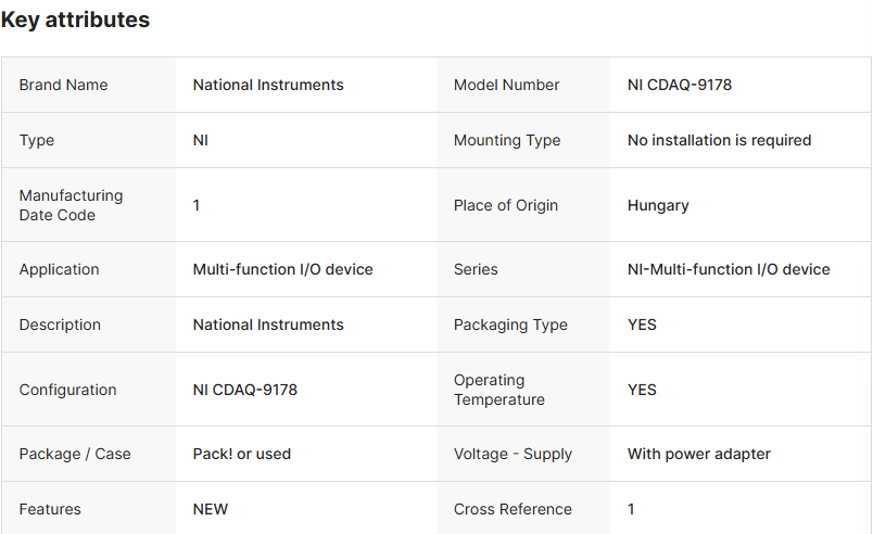 国家仪器公司 NI CDAQ-9178 USB CompactDAQ 机箱,数量有售